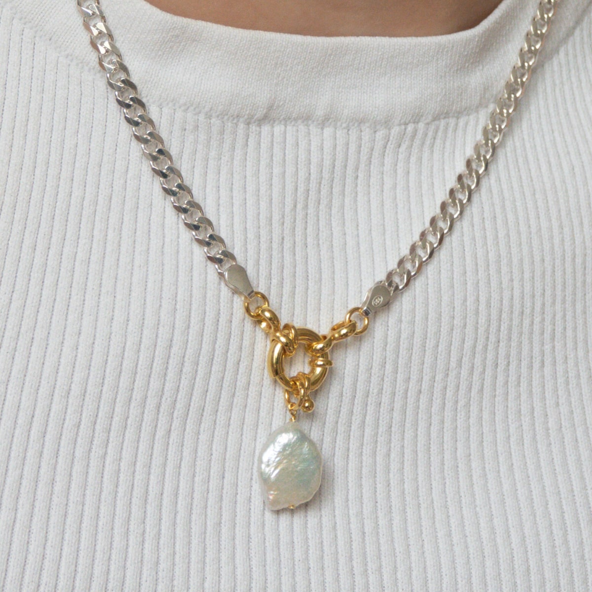 Bicolor Big Link + Baroque Pearl - Halsketten - Bicolor