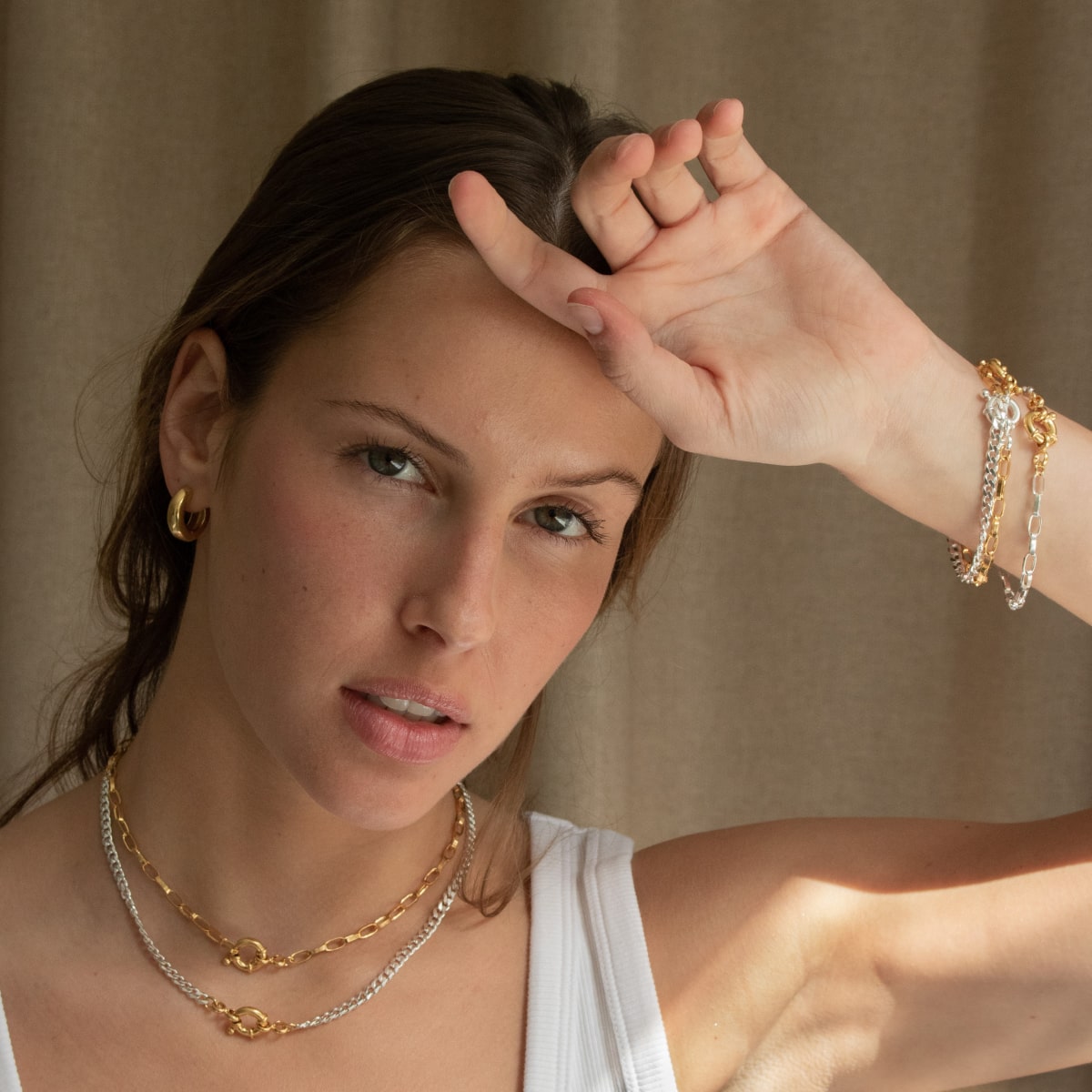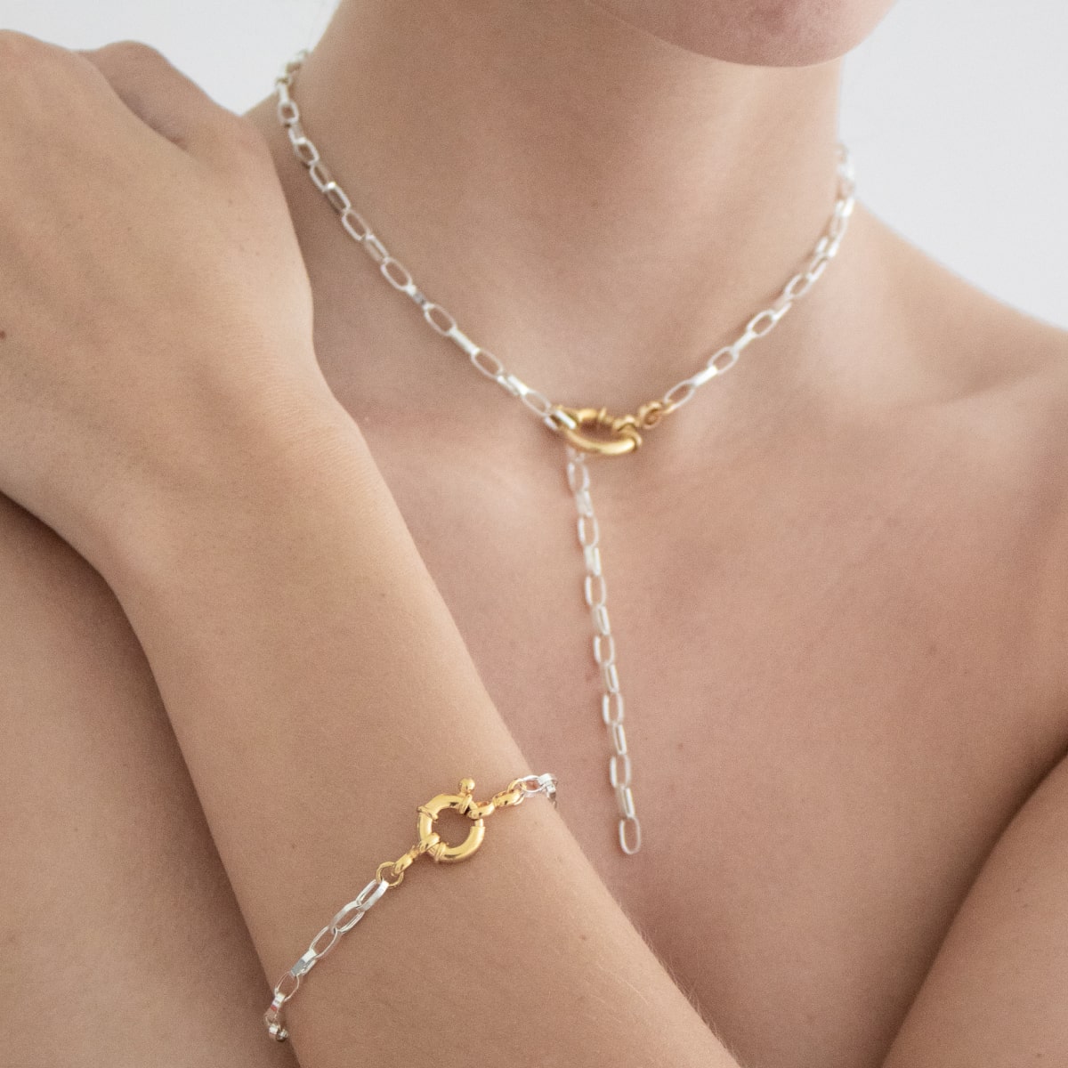 Our Bicolor Bicycle Bracelet is perfect for those who want to start wearing silver and gold jewelry together. This two-tone bracelet is a statement piece that you can wear alone, but it also looks wonderful stacked with other bracelets or even a watch.