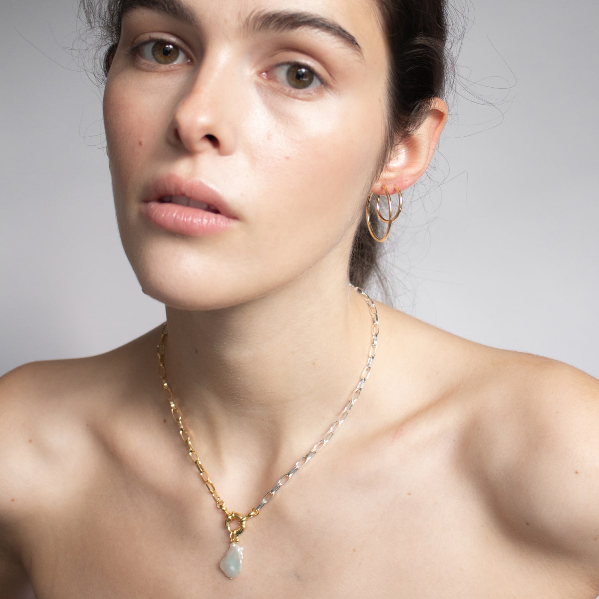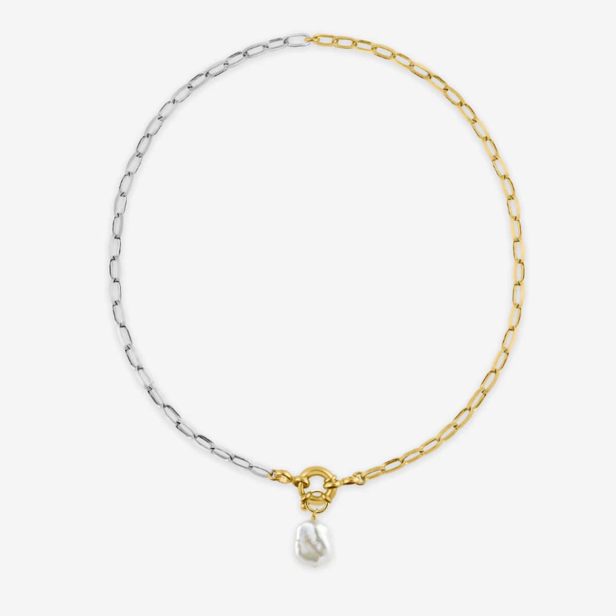 If you love the bicolor look as much as we do, then we recommend this chain to you: Our Bicolor Friend Chain. With this link chain, you can choose between two sizes - or bring both sizes together. The result: a cool layering. The Bicolor Chain can be perfectly integrated into your everyday look and enriches every outfit. The massive spring ring as a lock is particularly striking. Depending on your preference, you can wear this as a normal closure on the back or edgy chic on the front.