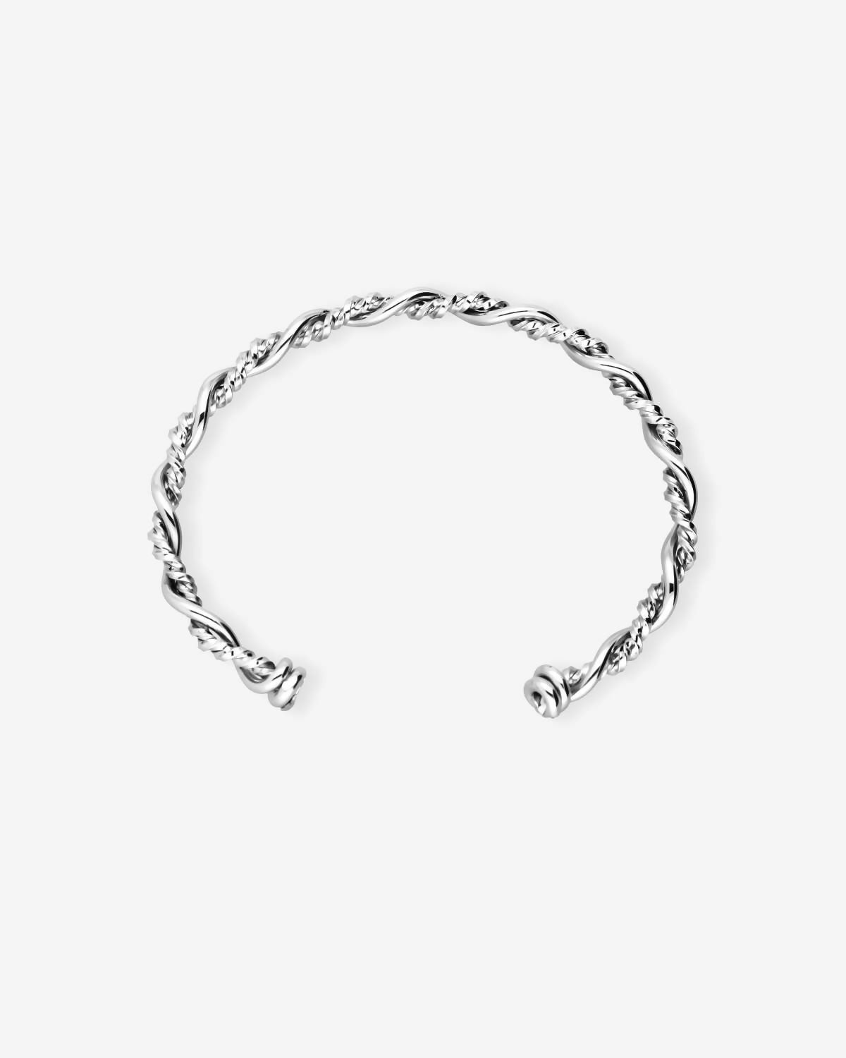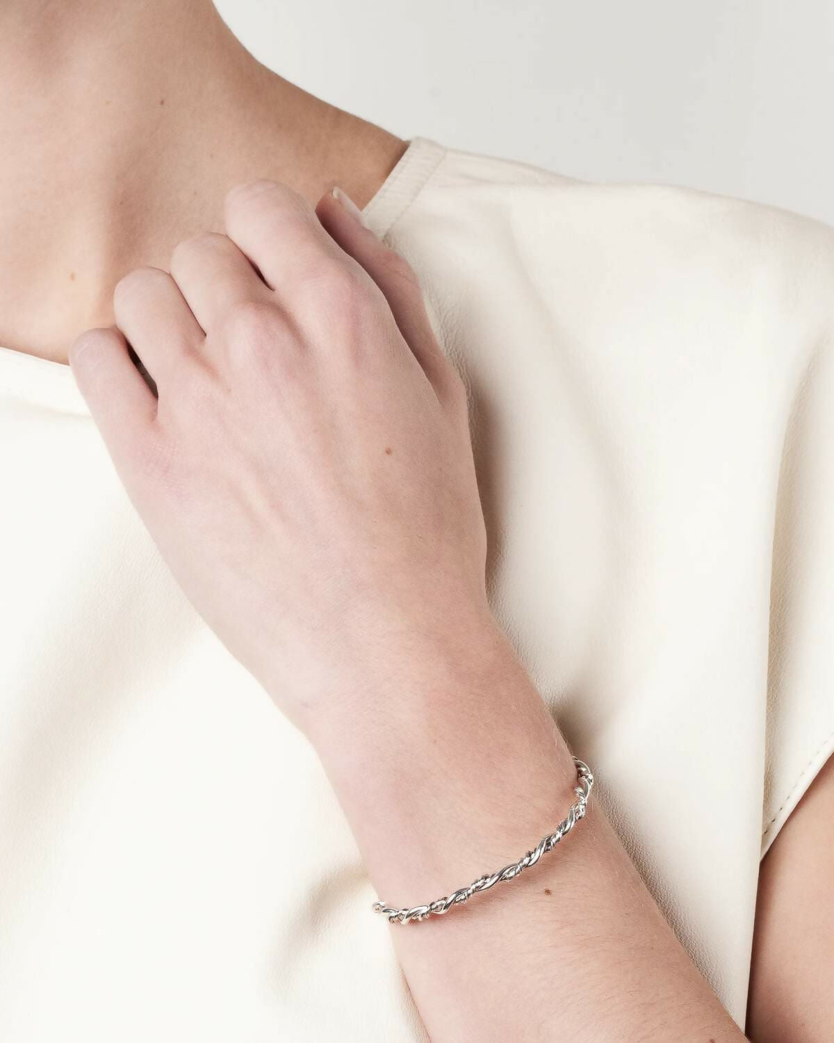 Die Silberfäden verflechten sich zu einem einzigartigen, feinen und eleganten Design. Dieses schmale Armband wird in Atelier Paulin's Atelier von Hand geformt und gedreht.