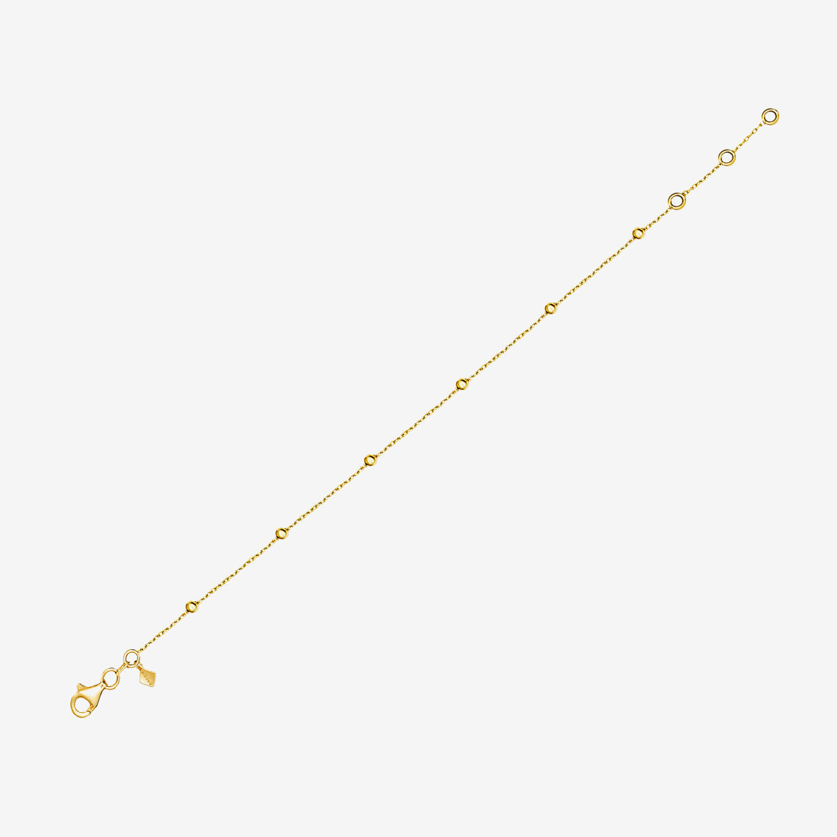 Filigran und feminin ist dieses 585 Gold Armband mit kleinen Goldkugeln. Dieses feine Kugel-Armband ist sehr schlicht, fein und daher auch sehr beliebt. Es ist ein Allround Schmuckstück, das sich besonders gut zum Layern mit anderen Armbändern eignet. Die Länge lässt sich zwischen 16 und 18cm variieren.