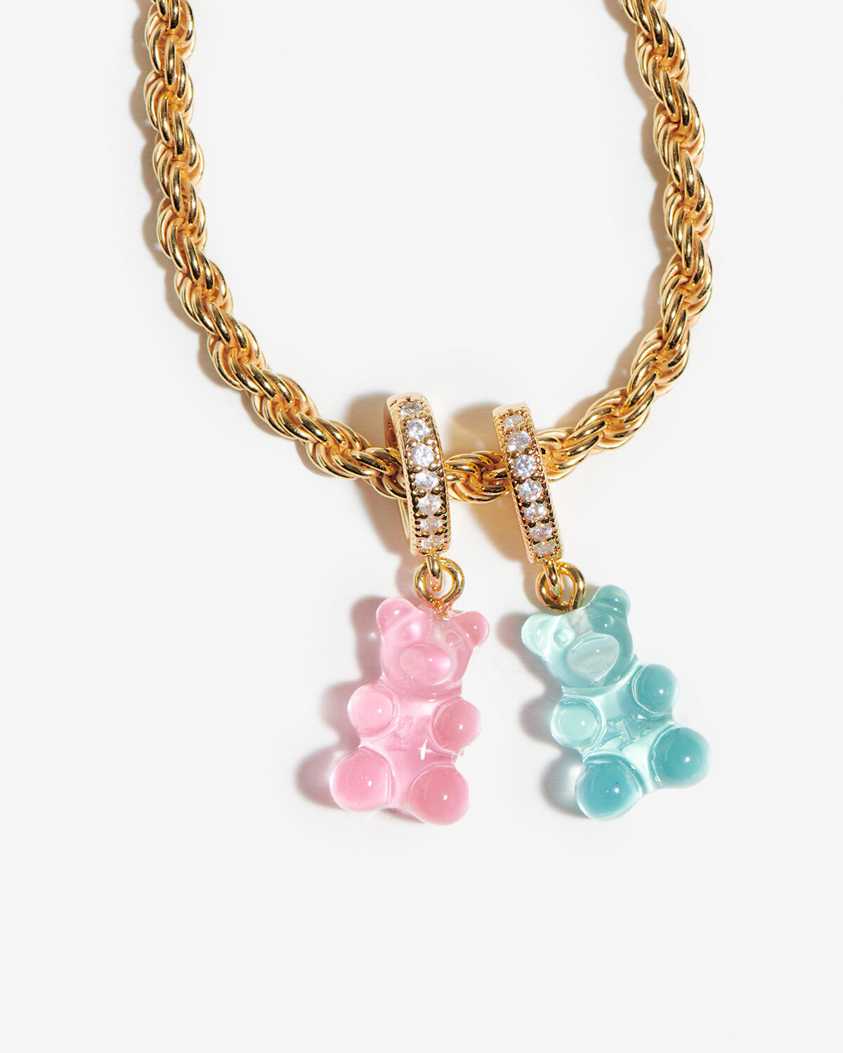 Dieser süße Kettenanhänger von Crystal Haze besticht durch das nostalgische Design eines Gummibärchens. Vielseitig kombinierbar, vervollständigt er jedes Outfit. Ob an Halsketten, Armbändern oder Fußkettchen getragen – die funkelnden Zirkoniasteine, das 18kt vergoldete Messing und das hochwertige Acetat machen ihn zu einem echten Hingucker.