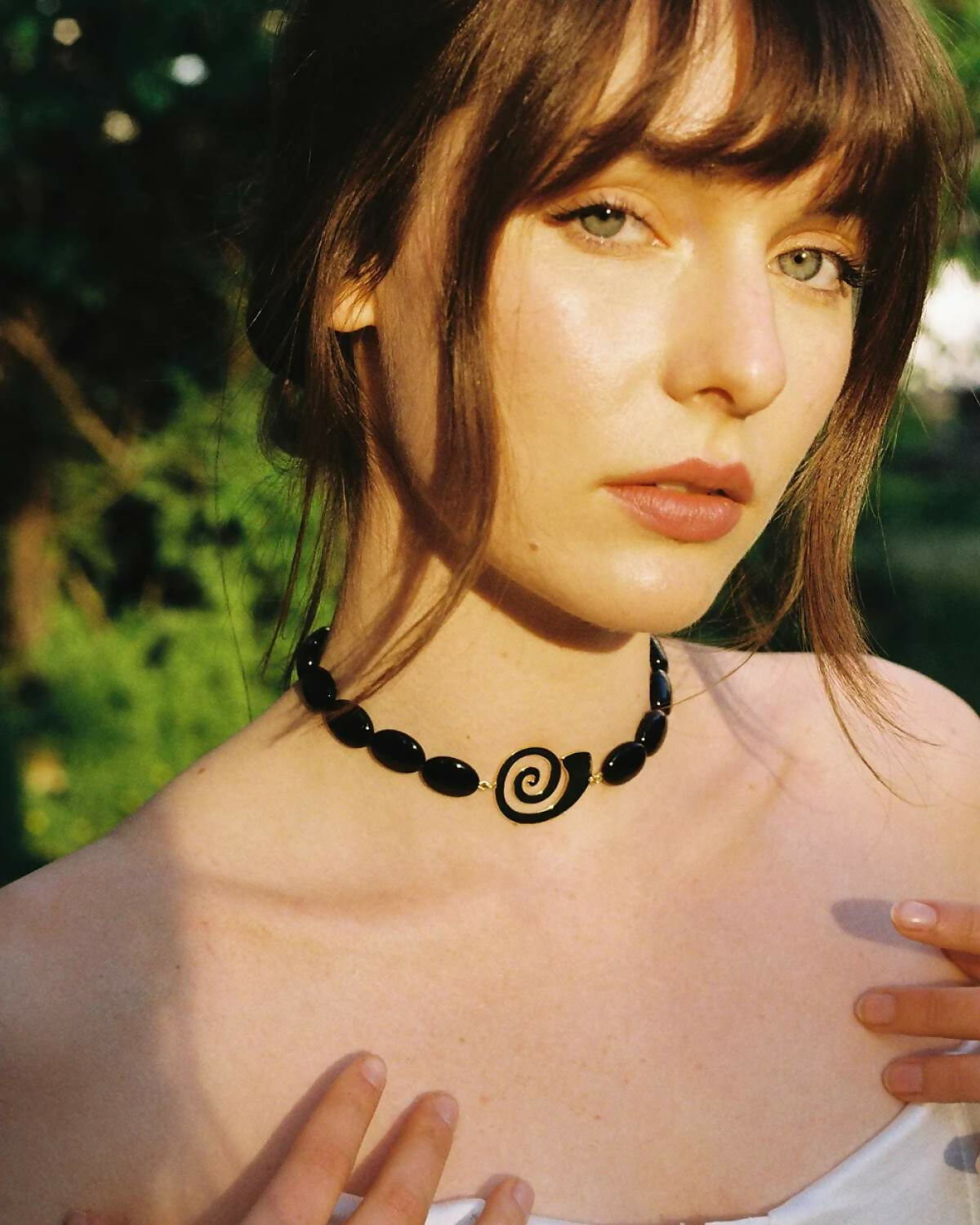 Albert Coll's beliebte Venus-Halskette jetzt mit einem atemberaubenden Onyx-Edelstein. Klassische Weiblichkeit sucht gezielt nach einem Hauch von Abwechslung. Die Halskette ist aus recyceltem Sterling-Silber und Onyx, die perfekt um den Hals passt.