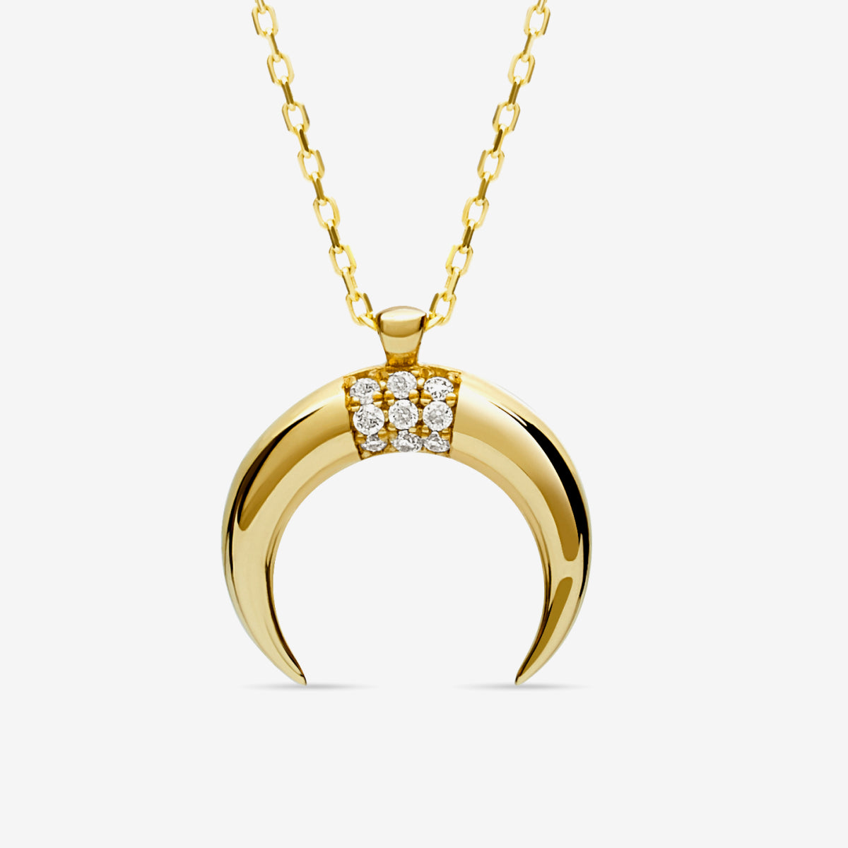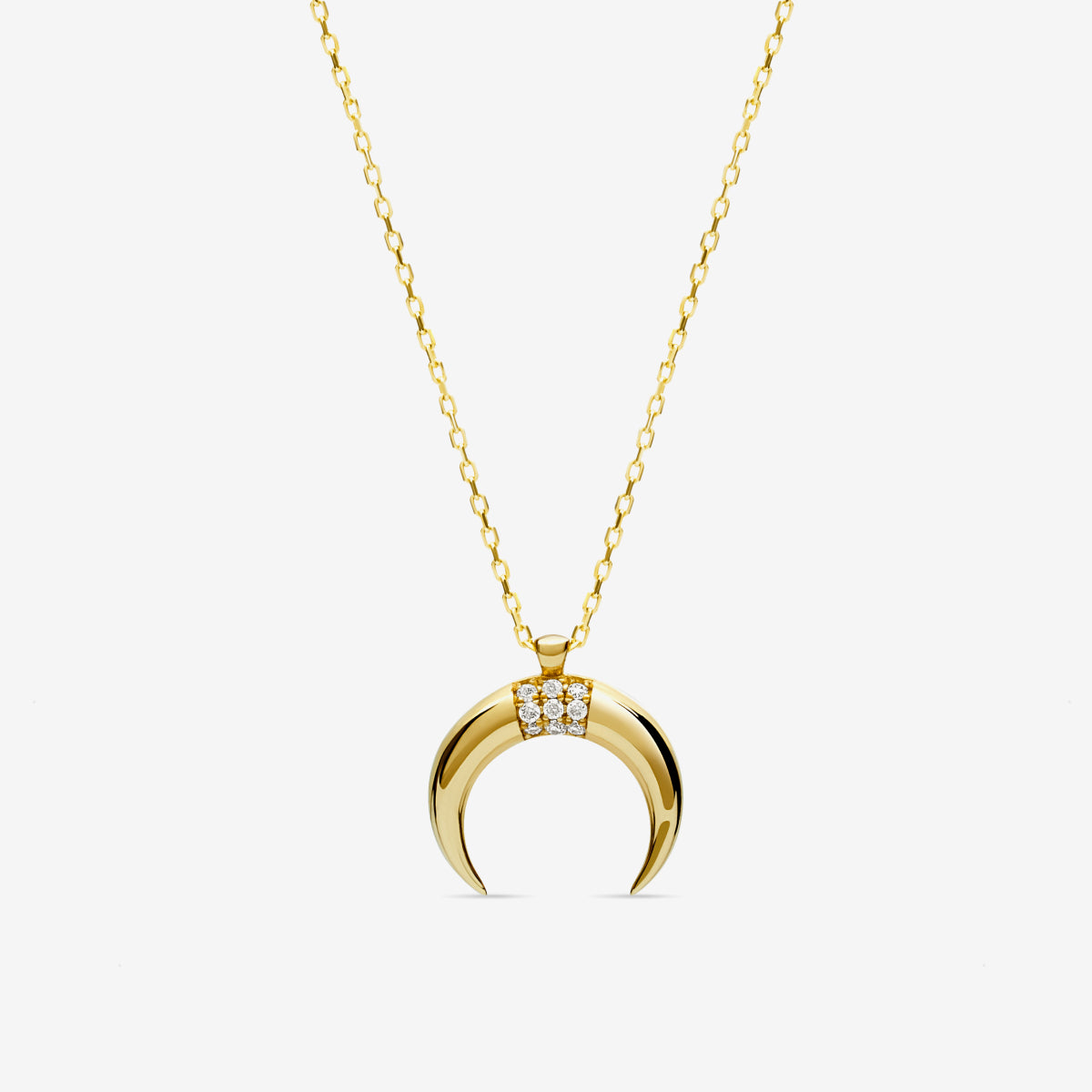 Dieser himmlisch schöne Luna Anhänger besteht aus 585 Gold und Diamanten. Diese Mond-Halskette ist vom Sichelmond inspiriert. Das Highlight des Anhängers sind die handgesetzten funkelnden Diamanten. Eine sehr bequeme und zierliche Halskette, die zu jedem Look und zu jedem Anlass passt. Die Halskette ist handgefertigt und hat eine sehr dünne und feine Kette, die sie sehr elegant macht. Ein magisches Schmuckstück das Sinnlichkeit, Sicherheit und Kraft ausstrahlt.