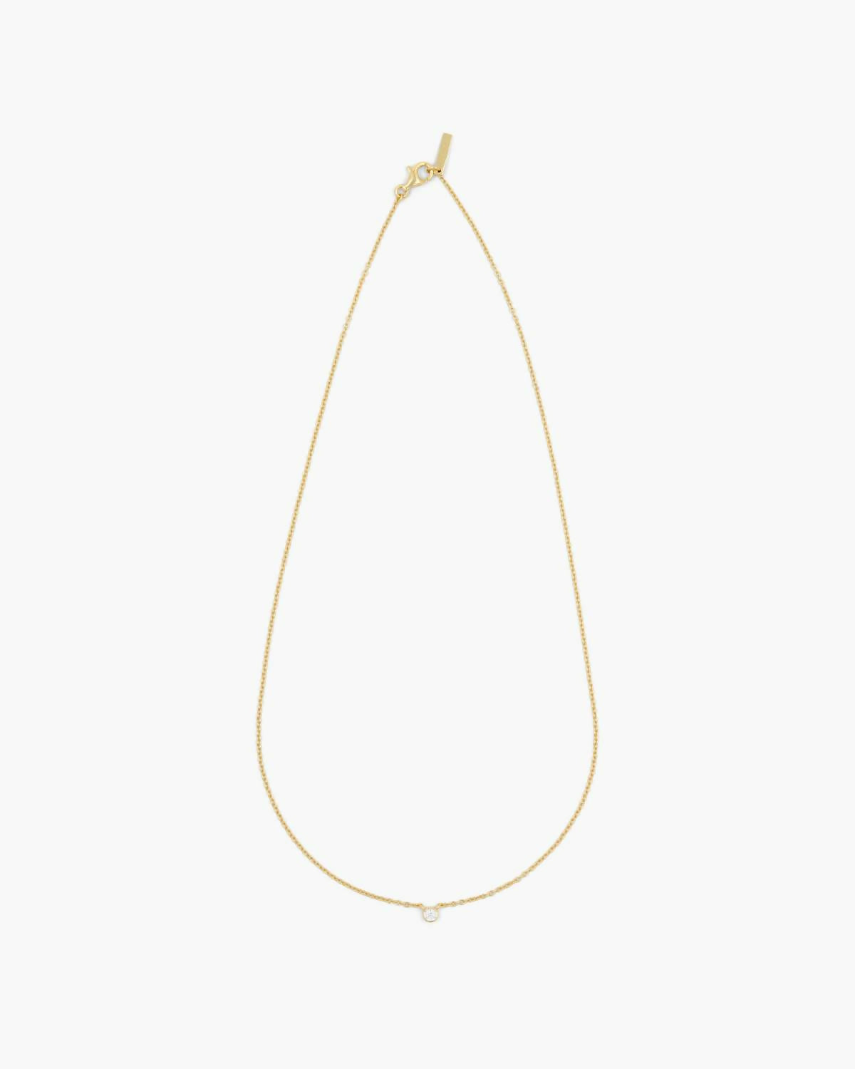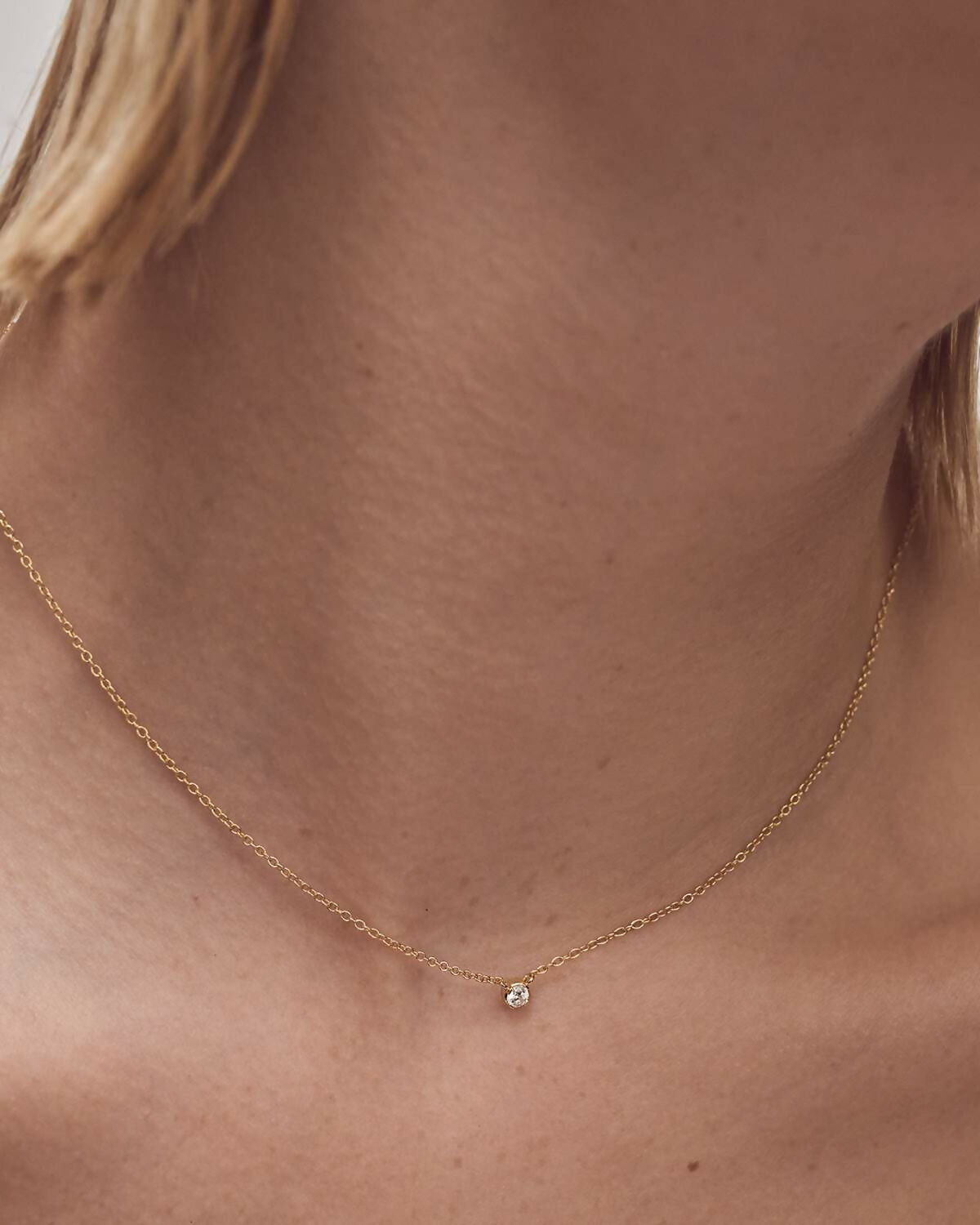 Ein schwebender Zirkonia, der in 925er Sterlingsilber gefasst und 18kt vergoldet ist. Die Halskette verleiht deinem Dekolleté einen zarten Glanz.