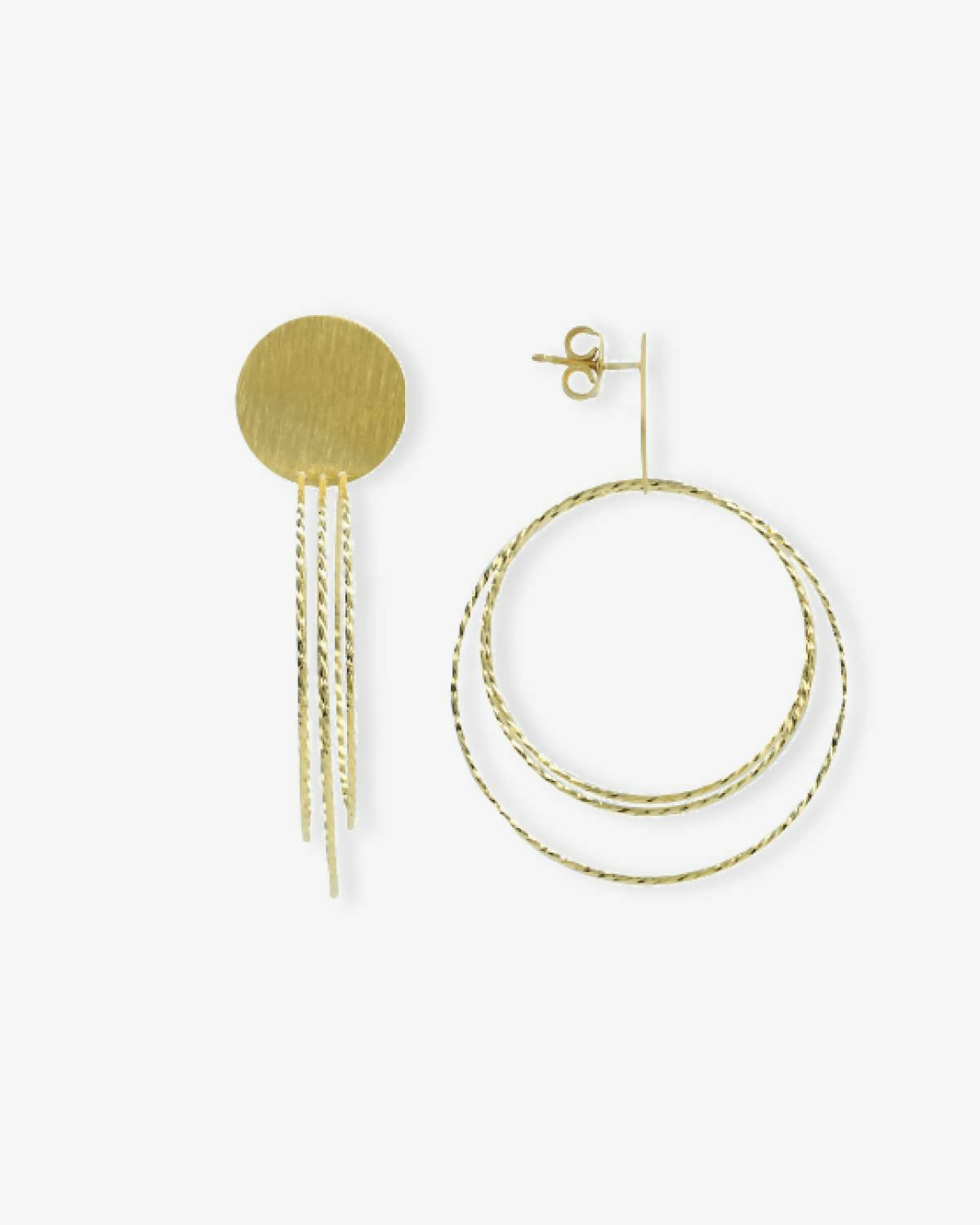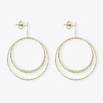 Classic Earring Brushed Round Triple Hoops Glow M - Ohrringe - 18k vergoldet