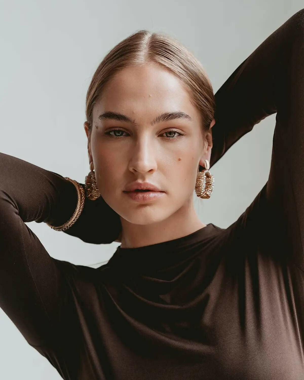 Ovale Formen treffen auf zeitlose Eleganz. Der kühle Goldton erinnert an eisige Raffinesse und macht diese Ohrringe zu vielseitigen Begleitern – vom Business-Look bis zur Abendgarderobe.