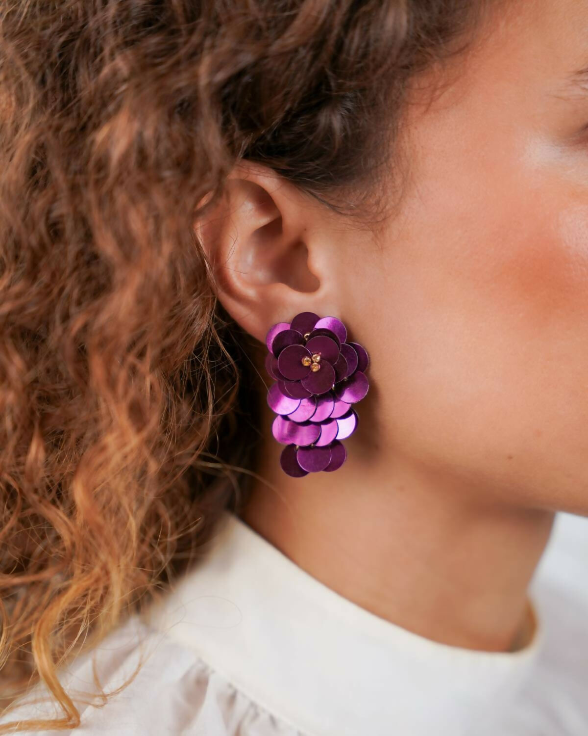 Sequin Waterfall M Dark Violet - Ohrringe - 18k vergoldet