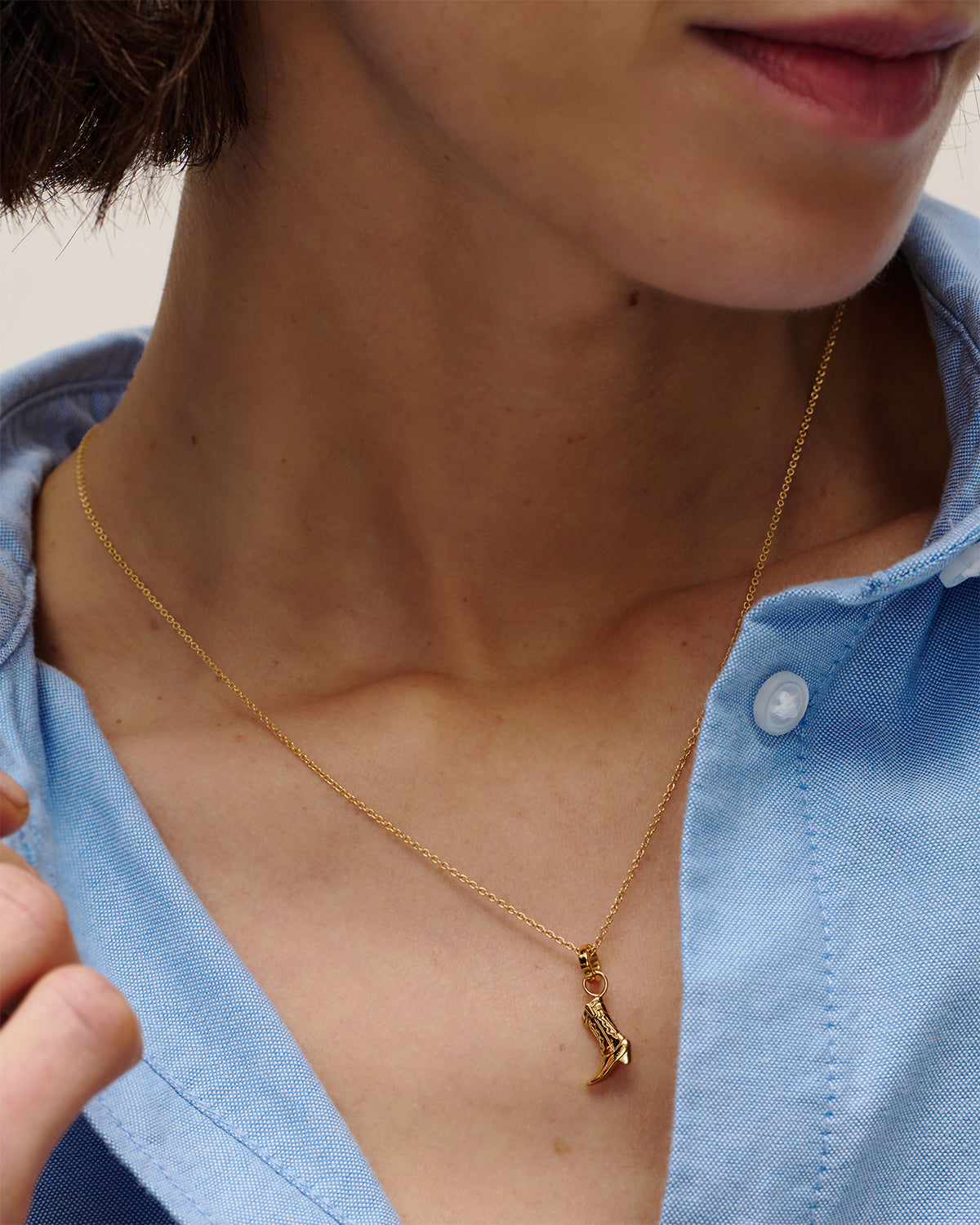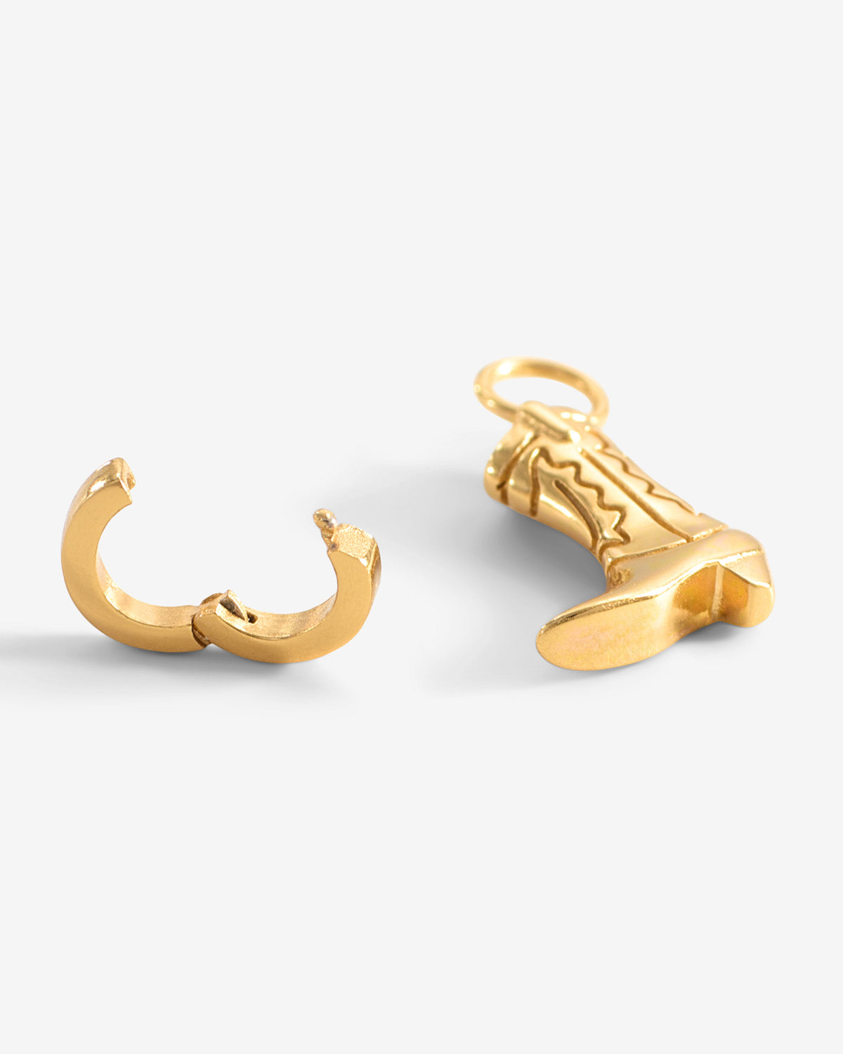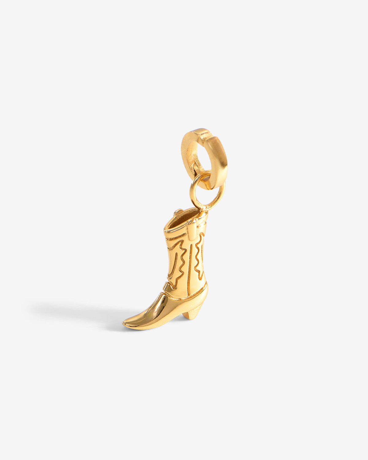 Wild West Kettenanhänger versprüht Western-Charme mit einem Augenzwinkern: 18kt vergoldet und als kleiner Cowboystiefel geformt, zeigt er feine Prägungen und eine leicht geschwungene Spitze. Der warme Goldglanz macht ihn überraschend elegant, während die Stiefel-Silhouette für eine verspielte, freie Vibe sorgt – perfekt solo oder im wilden Charm-Mix.