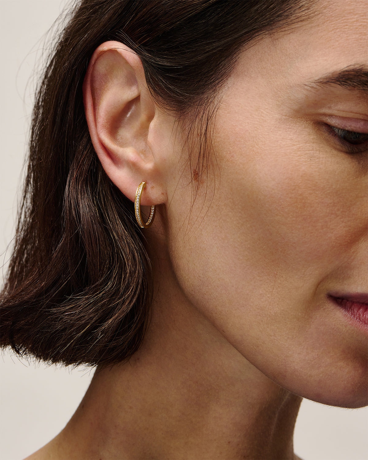 Die Kylee Hoops von Ohh Luilu verleihen dir Glanz und Glamour. Diese Hoops aus 18kt vergoldetem Sterlingsilber sind mit mehreren Reihen funkelnder Zirkonia besetzt. Ob zu einem besonderen Anlass oder im Alltag, diese Hoops sind deine perfekten Begleiter.