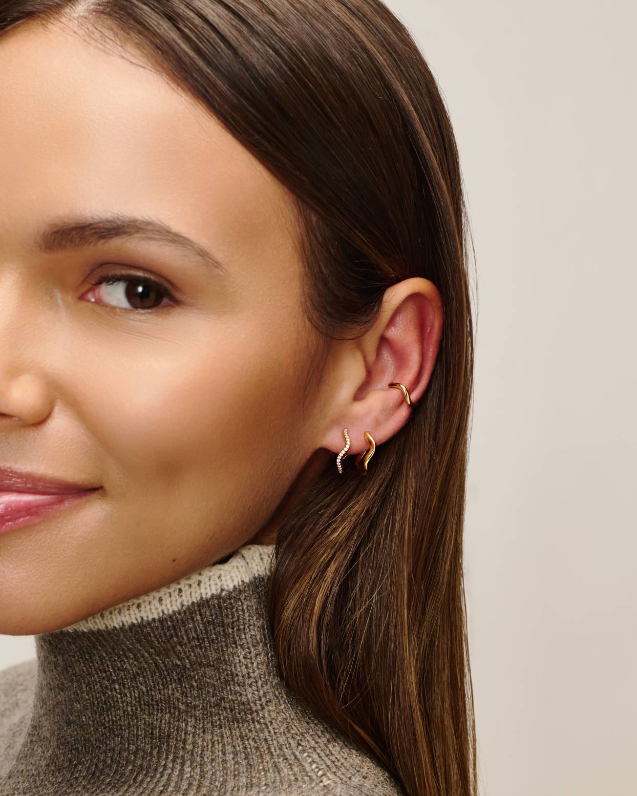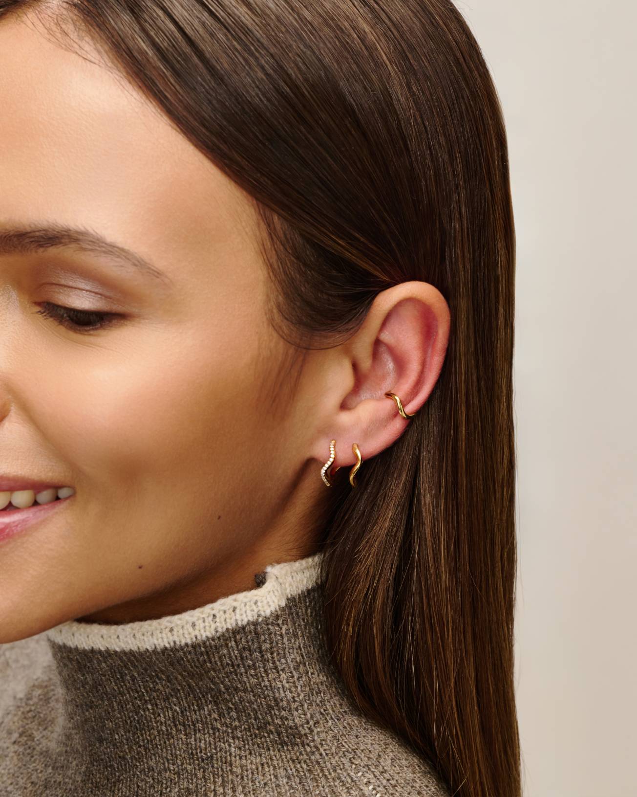 Mit Ciana holst du dir Flexibilität ins Schmuckstyling. Der offene C-Shape in 18kt Vergoldung wirkt frisch und leicht anders als klassische Creolen. Ein Detail, das Spaß macht und deinem Ohrschmuck ein trendiges Extra gibt.