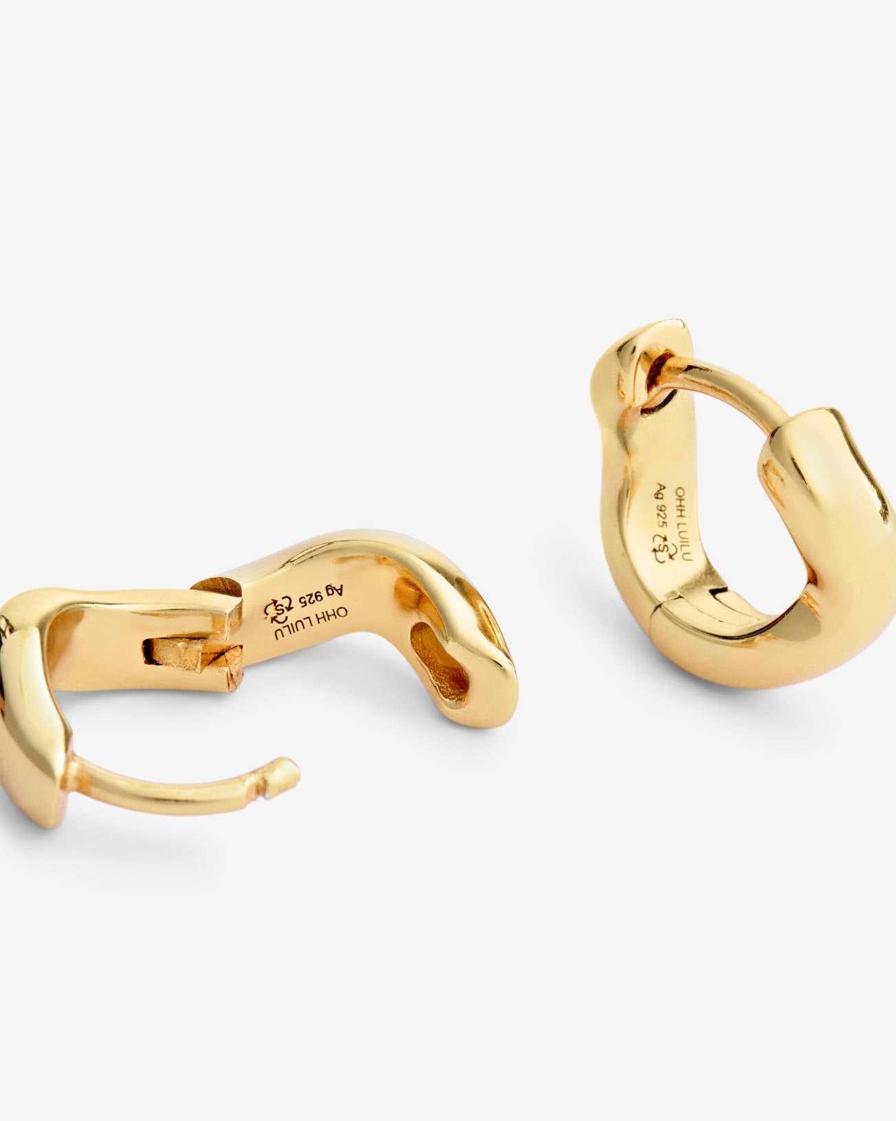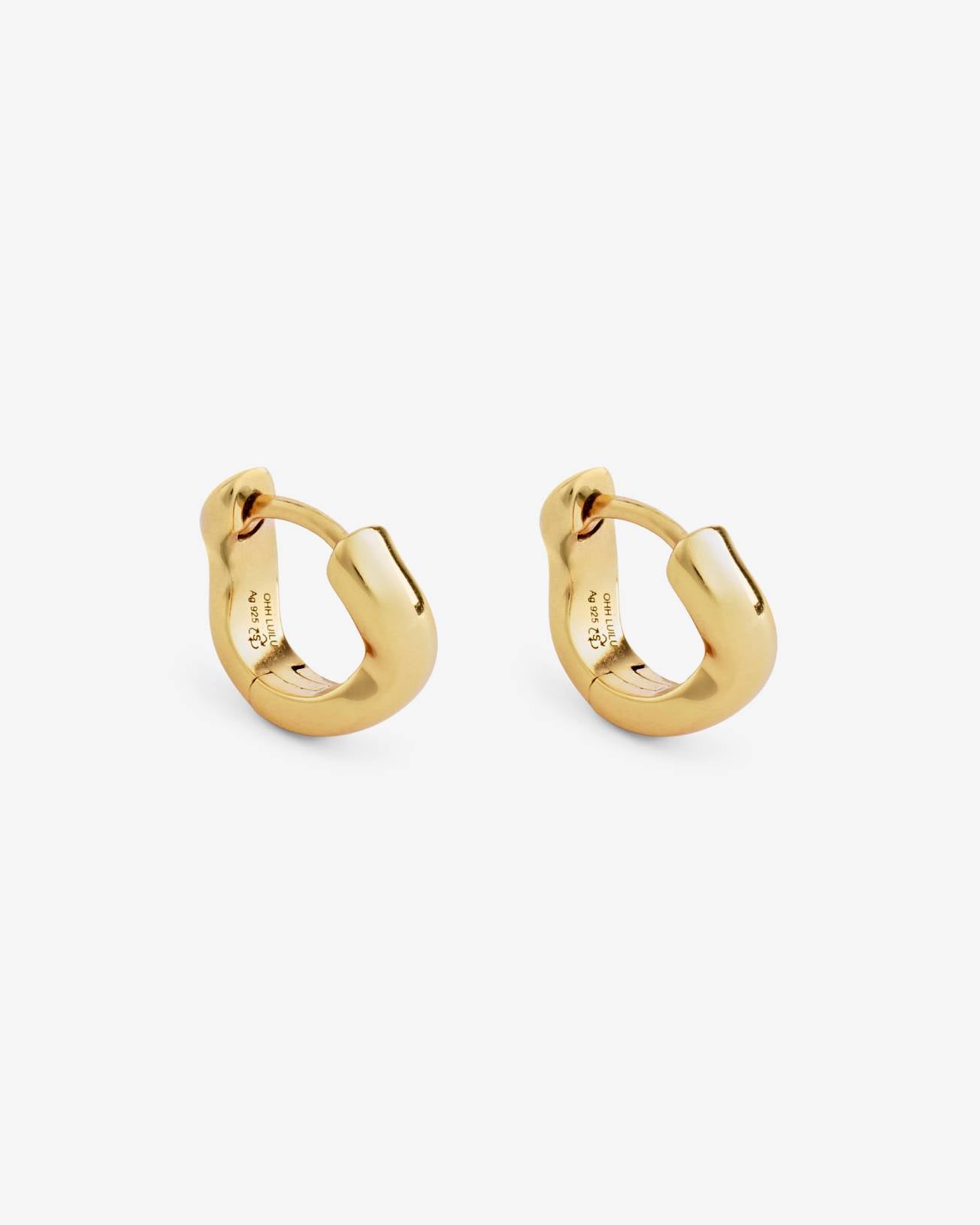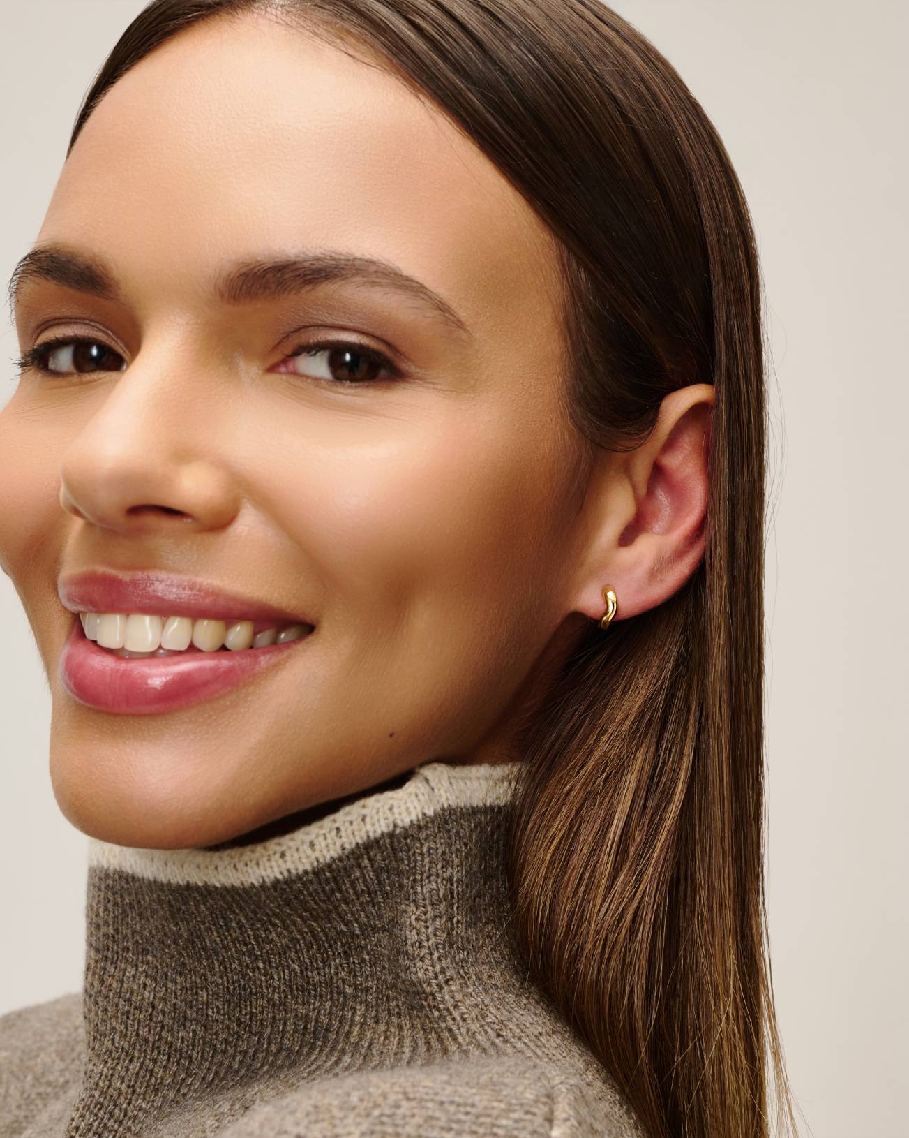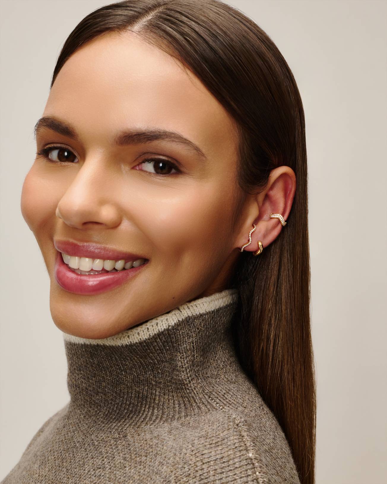 Ciana Small zeigt, wie vielseitig Creolen aussehen können. Die 18kt vergoldeten Ohrringe spielen mit einer sanft geschwungenen Linie und geben dem klassischen Design einen zeitgemäßen Twist. Dezent in der Größe, aber markant im Detail – ein Allrounder für jeden Style.