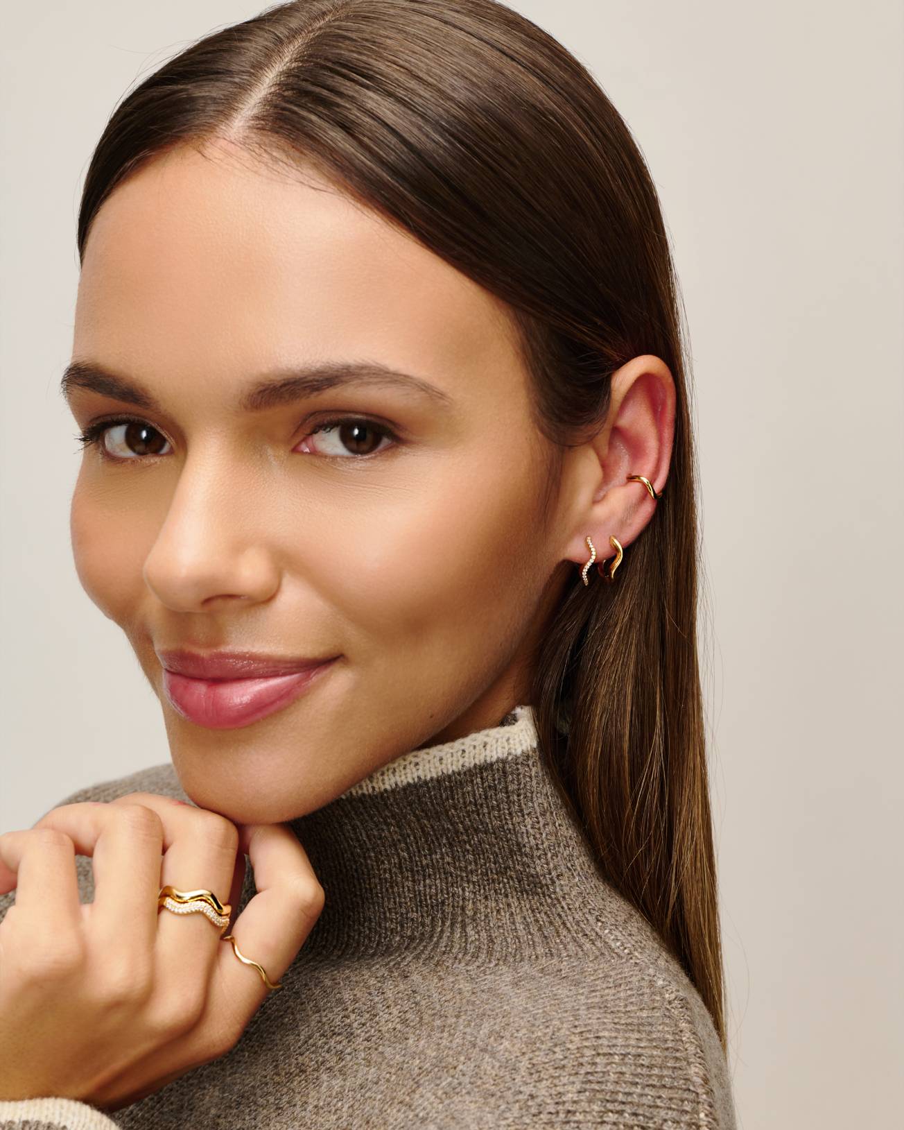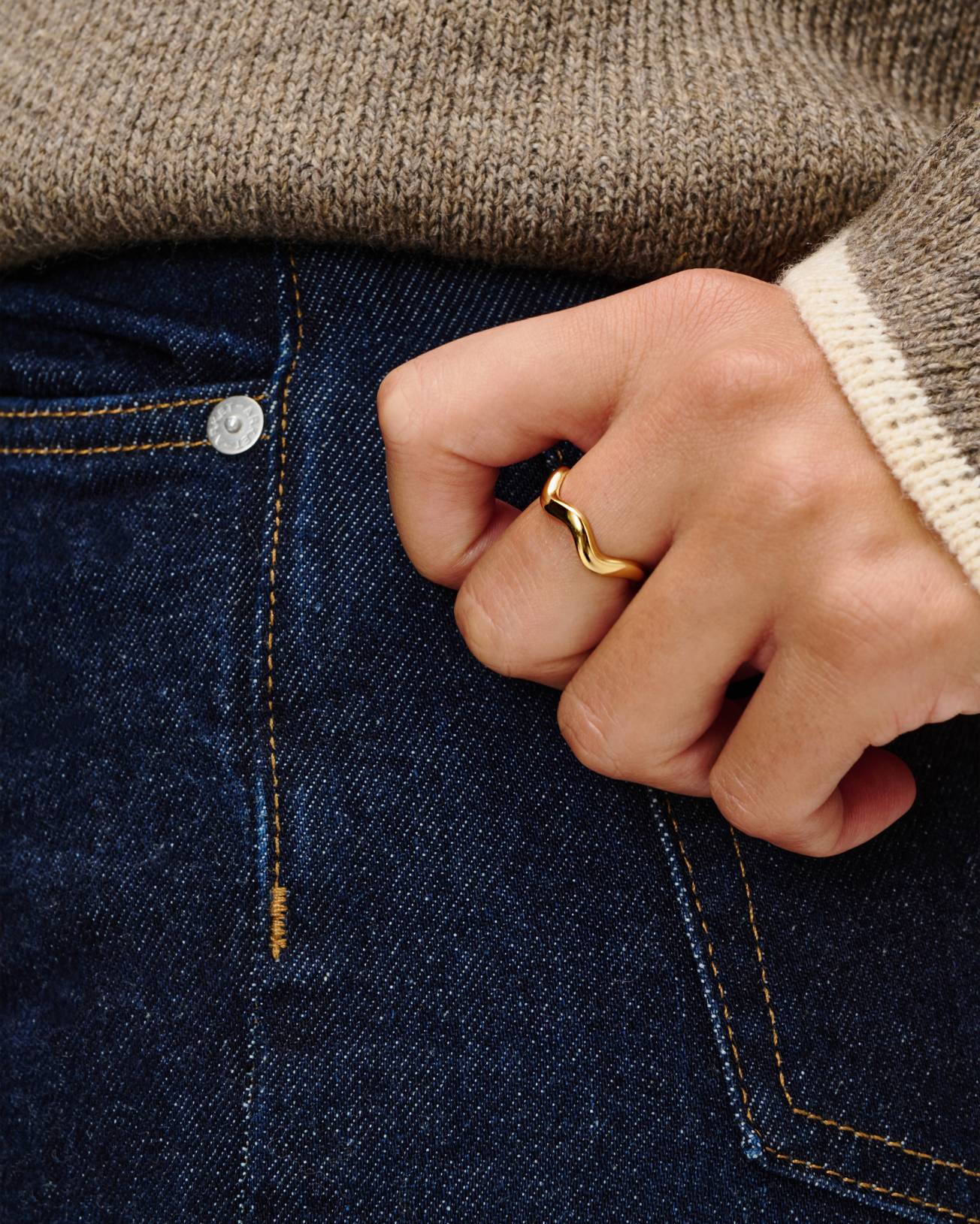 Frieda bringt eine neue Dimension ins Ringdesign. In 18kt Vergoldung zeigt er sich mit einer sanft geschwungenen Form, die auffälliger und markanter wirkt als klassische Ringe. Ein Piece, das Leichtigkeit mit Ausdruck verbindet und vielseitig bleibt. Frieda ist die ideale Wahl für alle, die moderne Designs mit Charakter suchen.