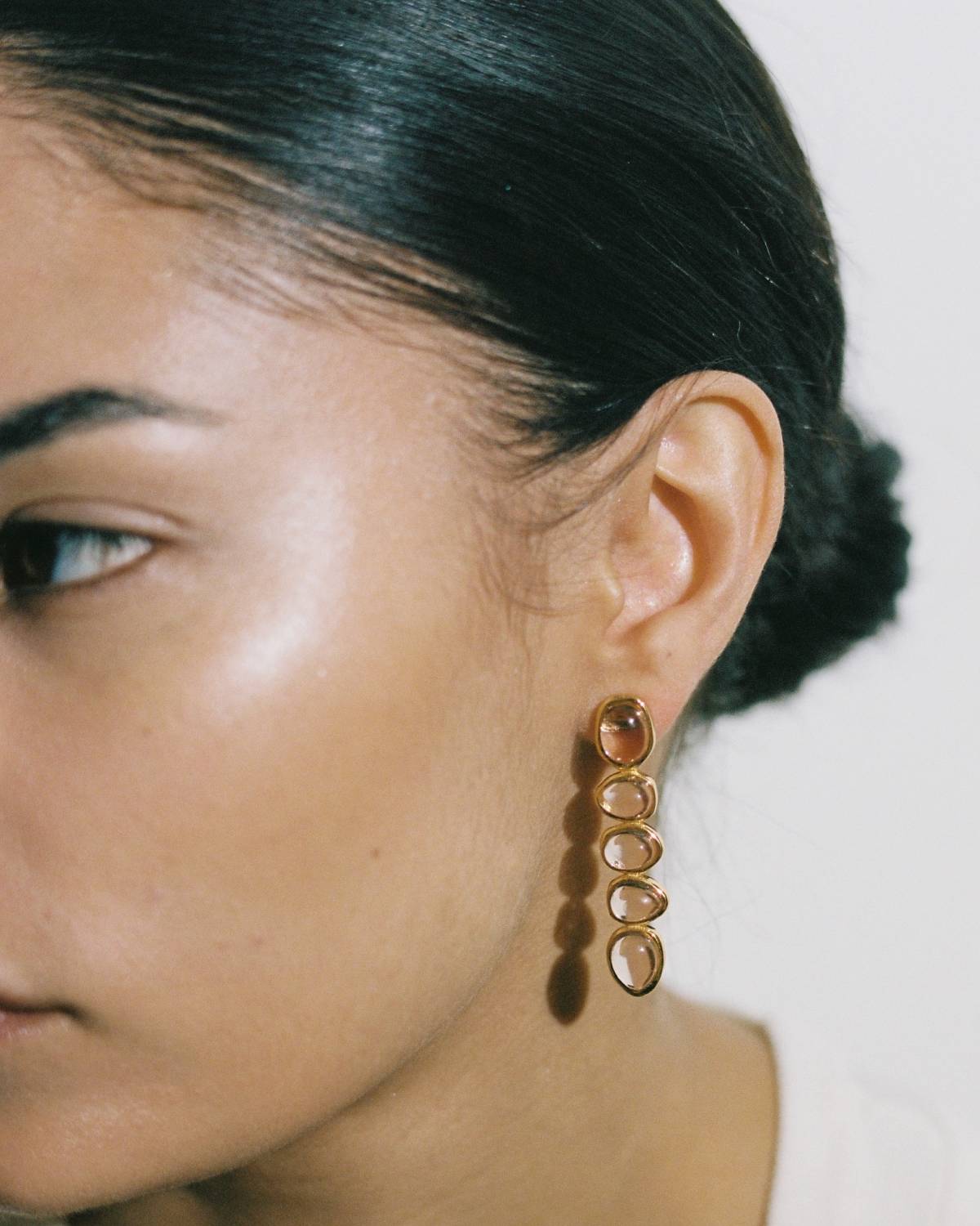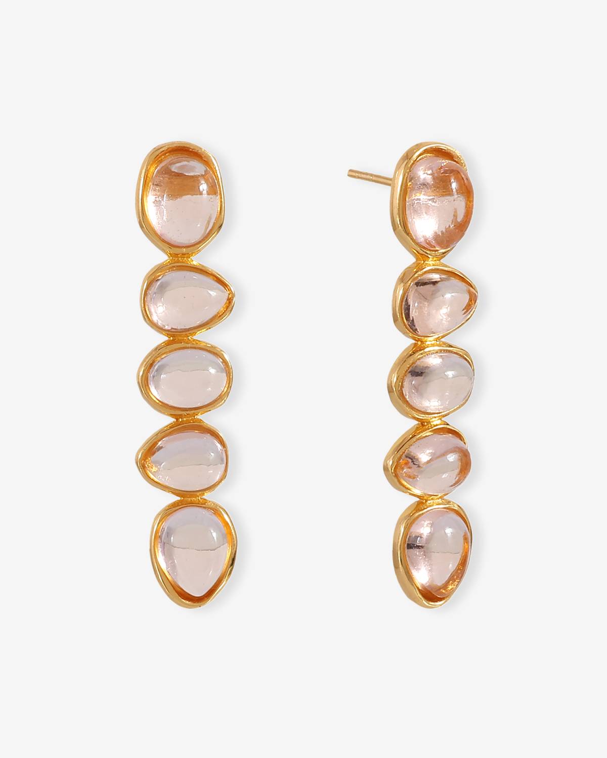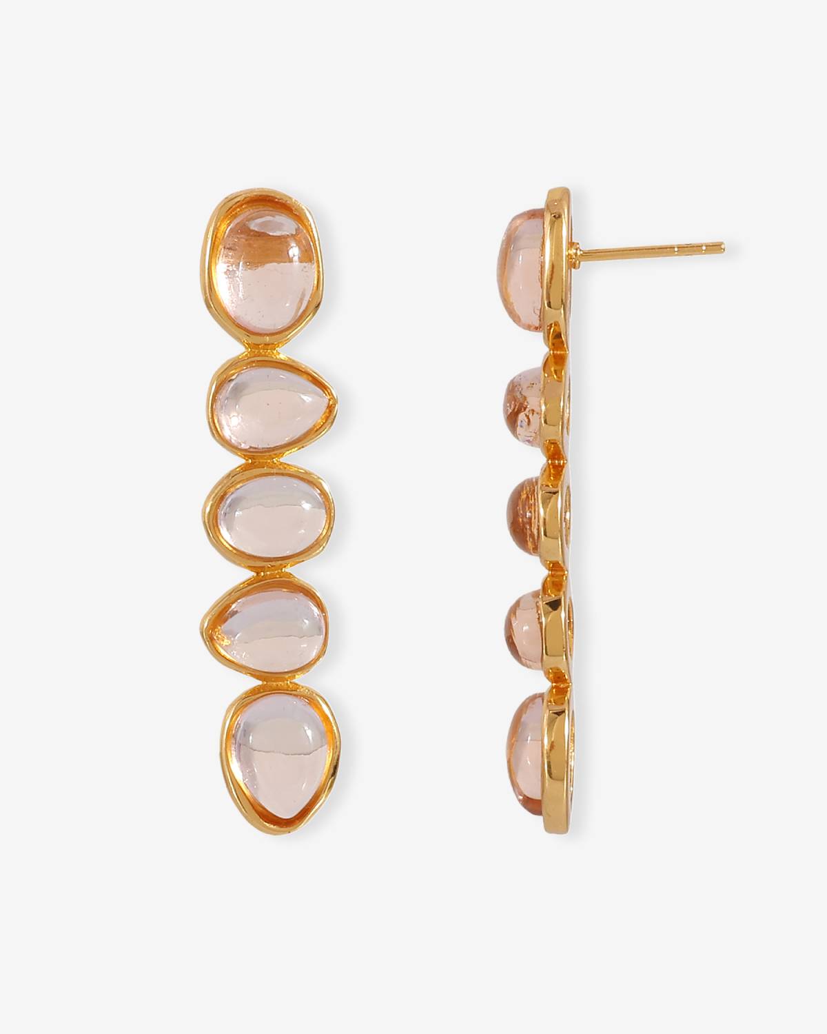 Die Portia Earrings sind pure Eleganz mit Leichtigkeit. Sanft schimmernde Champagner-Steine reihen sich wie kleine Lichtpunkte aneinander und funkeln bei jedem Schritt. Dank 22kt Vergoldung wirken sie luxuriös und gleichzeitig modern – ein Must für deine Ohrring-Collection.