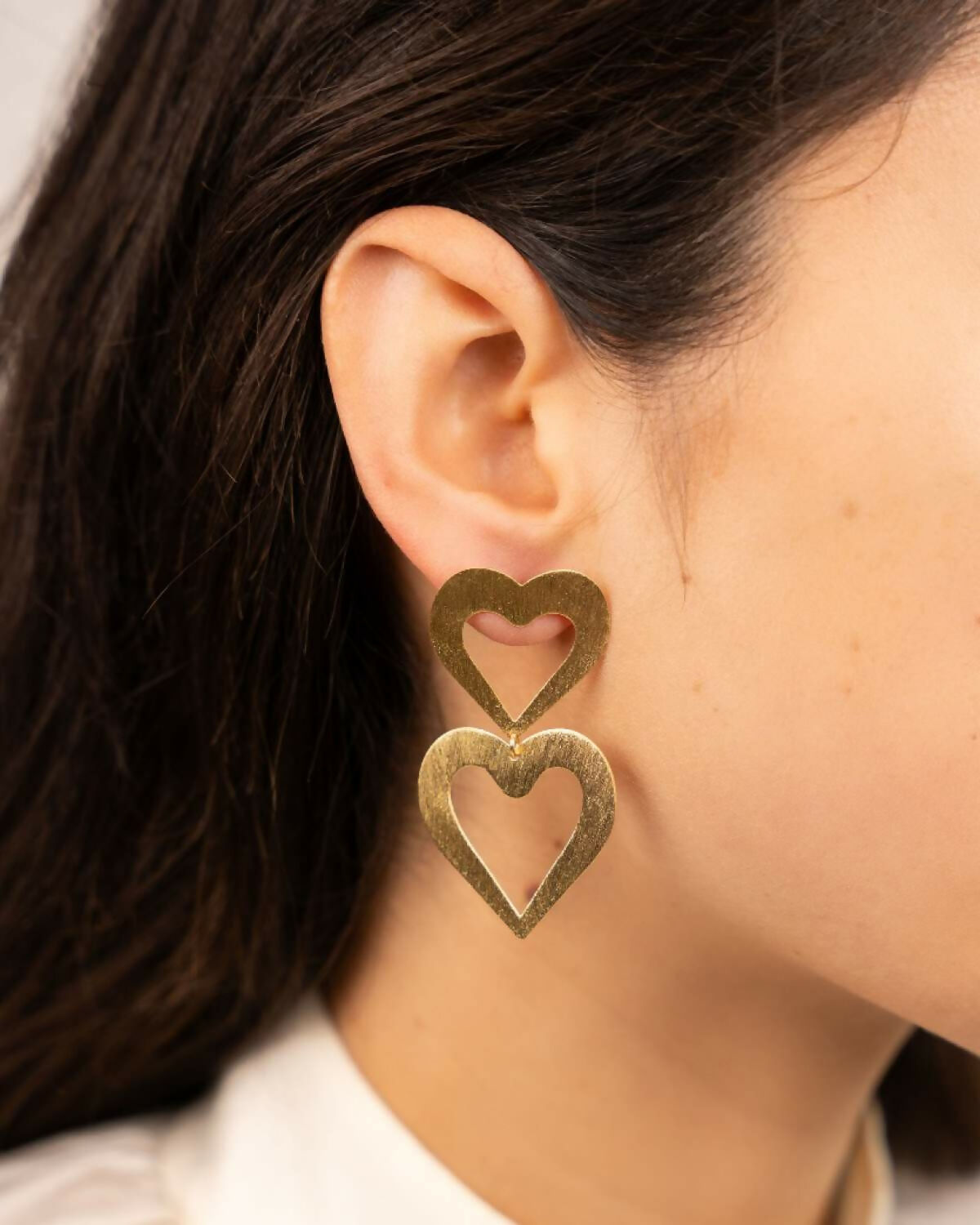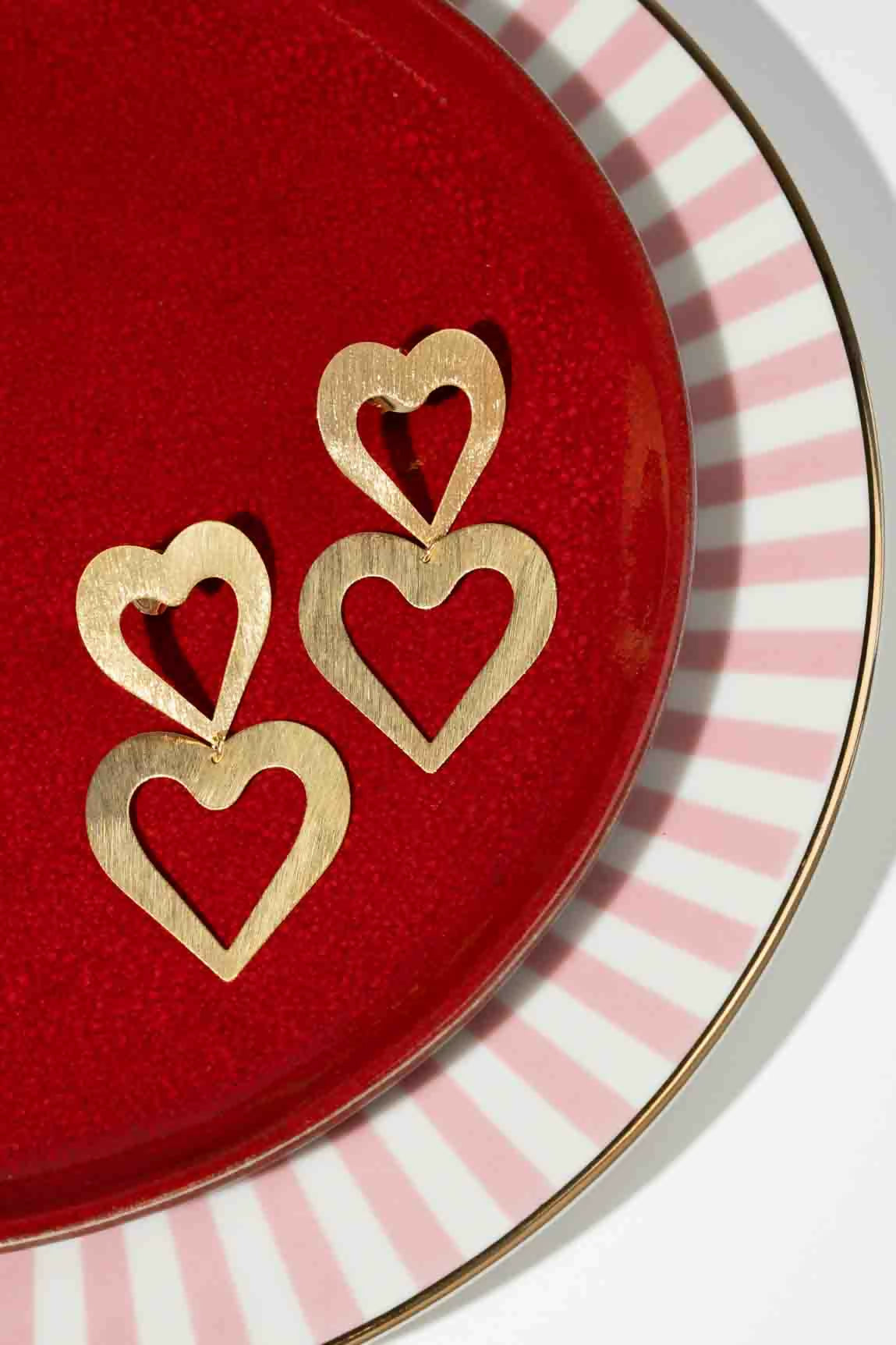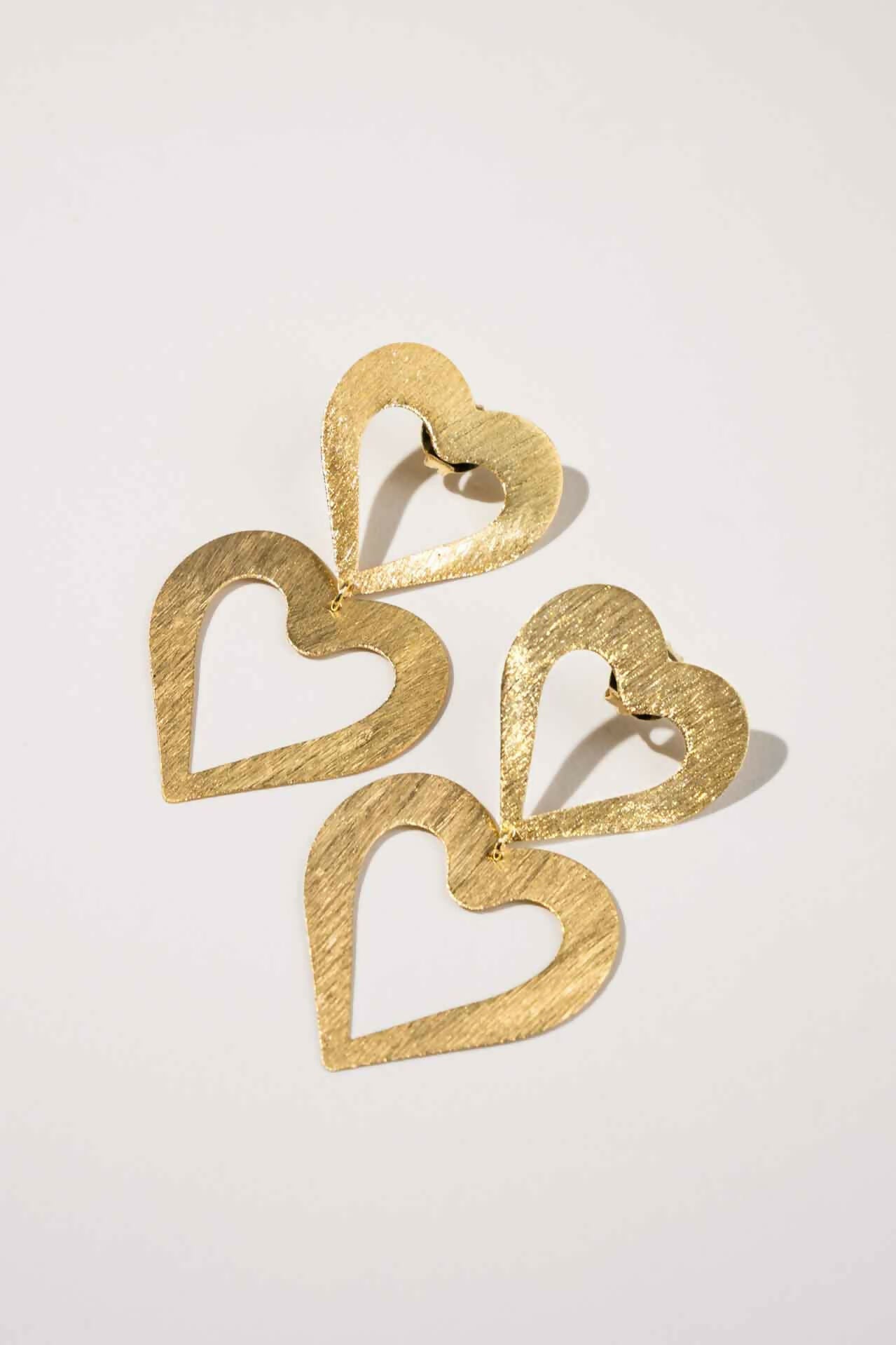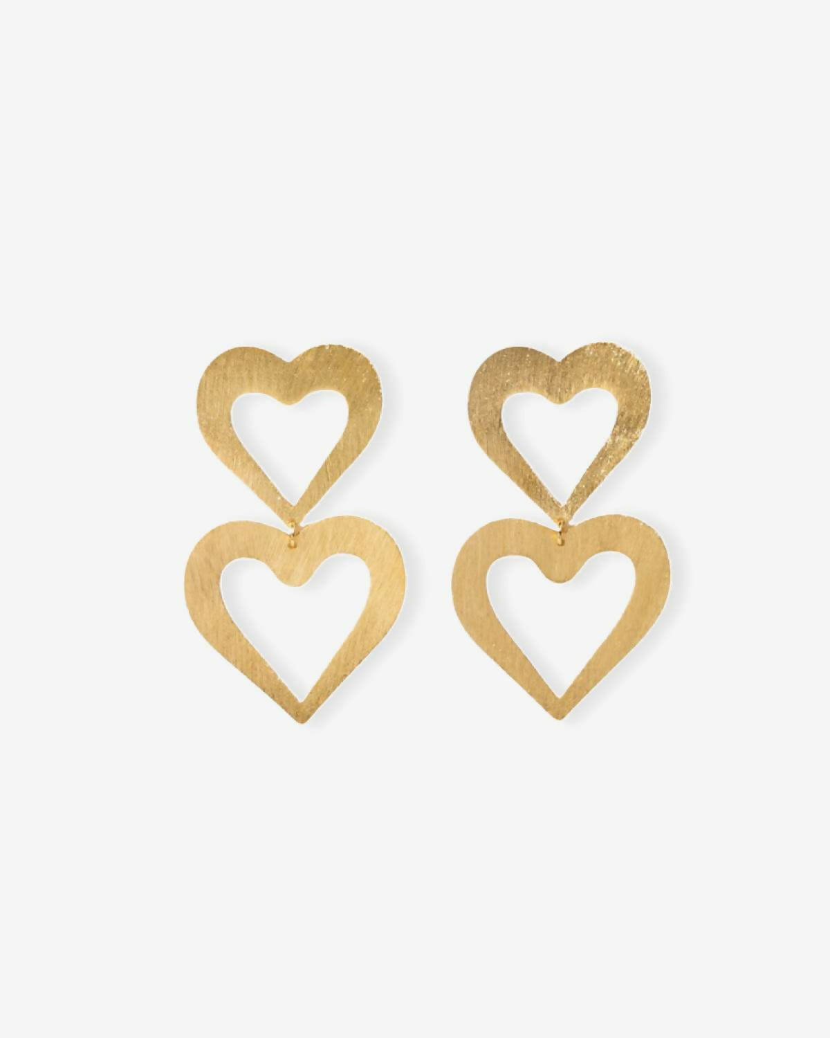 Double Heart Open Satin Brushed Gold - Ohrhänger - Vergoldet