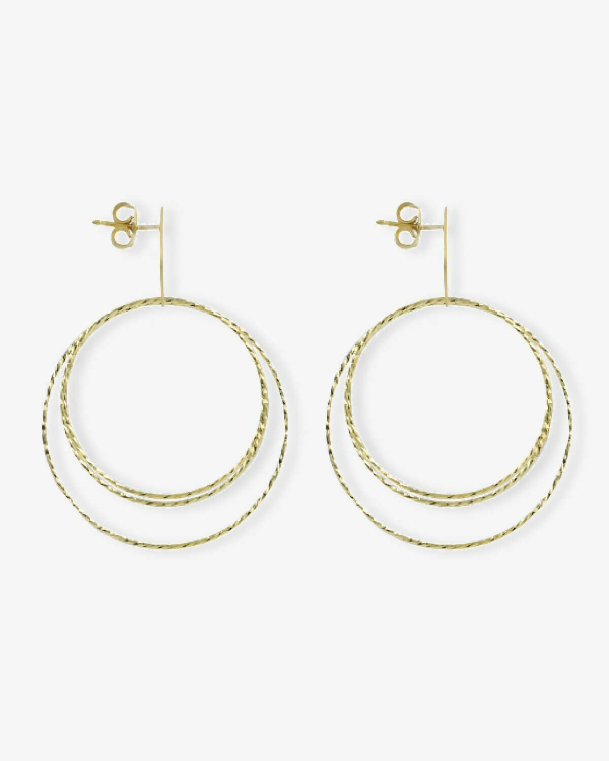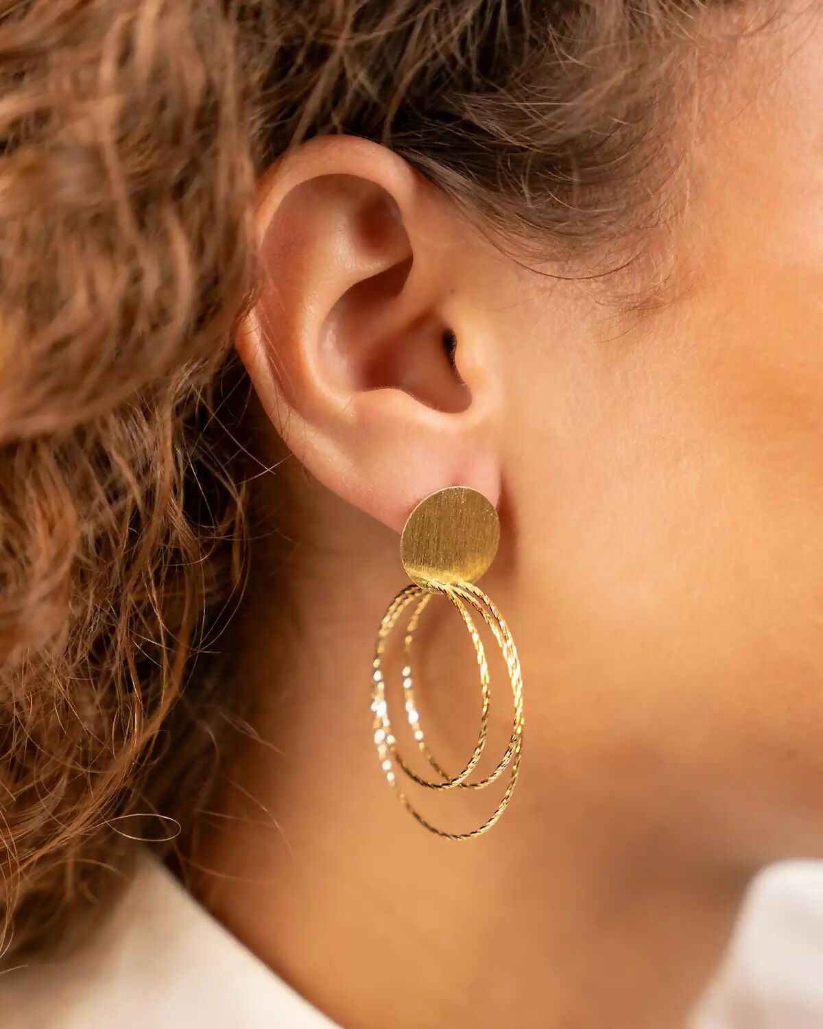 Classic Earring Brushed Round Triple Hoops Glow M - Ohrringe - 18k vergoldet