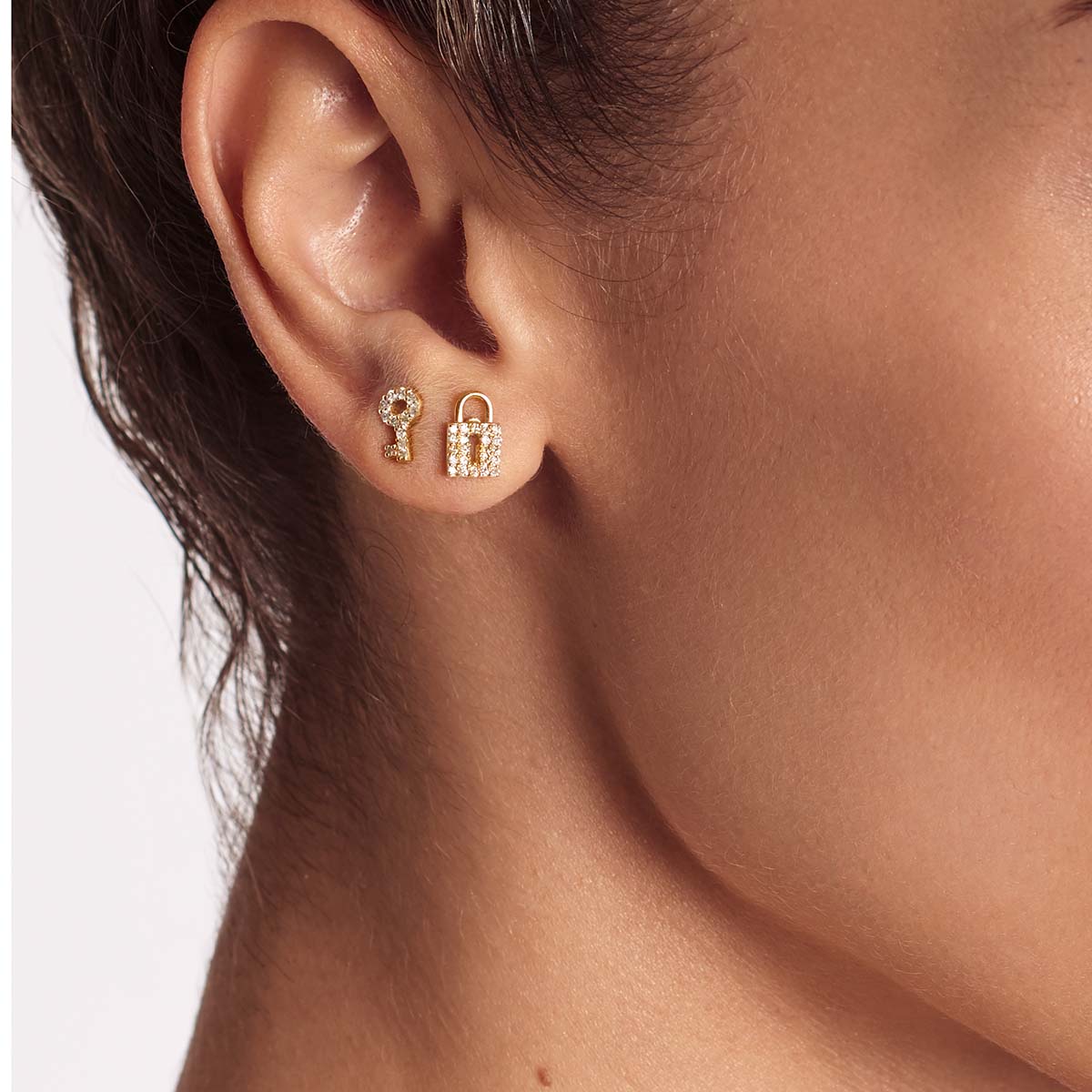 Diamond Pave Lock and Key - Ohrstecker - 585 Gold