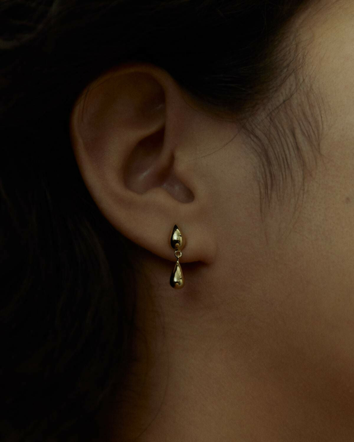 Ein zartes, aber kraftvolles Paar Tropfenohrringe aus 925er Sterlingsilber. Die kleinen Tropfenanhänger erzeugen Bewegung, die dieses Schmuckstück zum Leben erweckt.