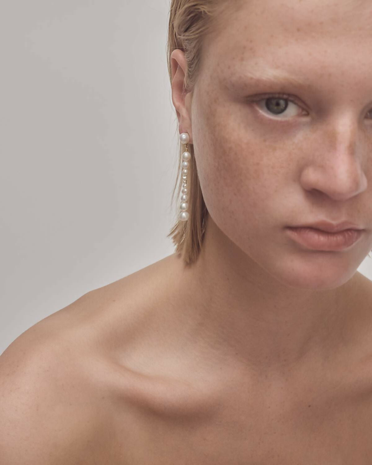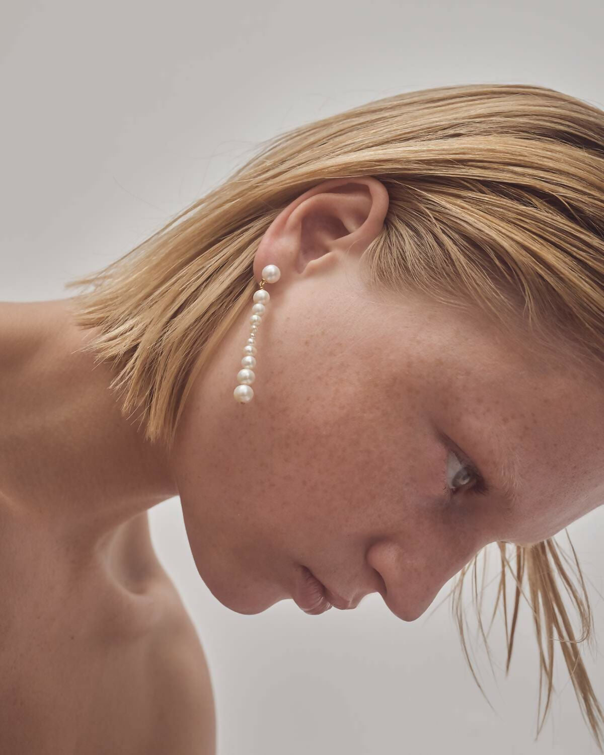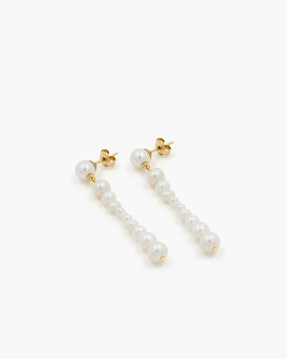 Eine Ode an das perfekt Unvollkommene - Veränderung der Größen von natürlichen Süsswasserperlen in einem wunderschönen hängenden Ohrring, hergestellt aus 925er Sterlingsilber.