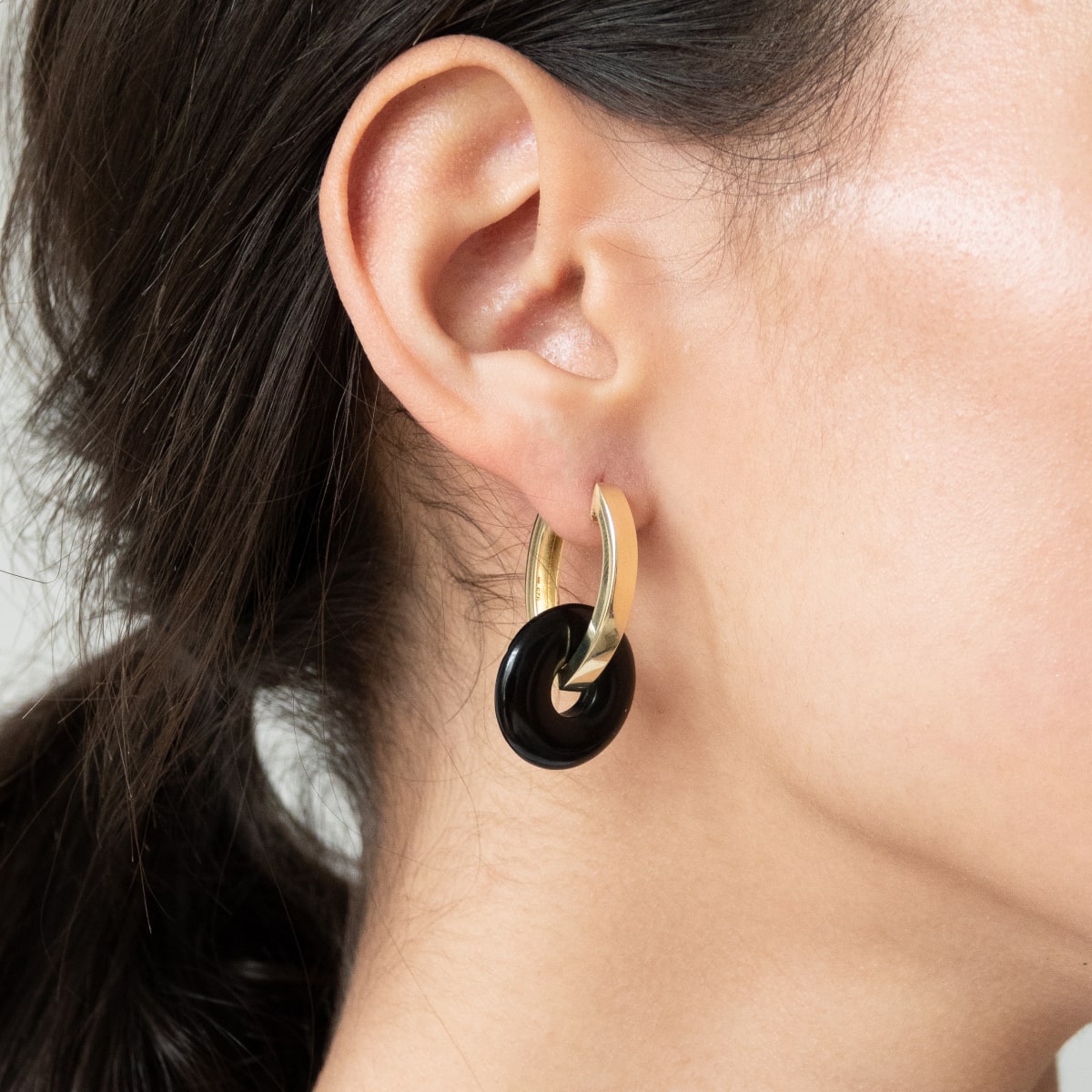 Oval Creoles + Double Medium Onyx - Creolen - 18k vergoldet