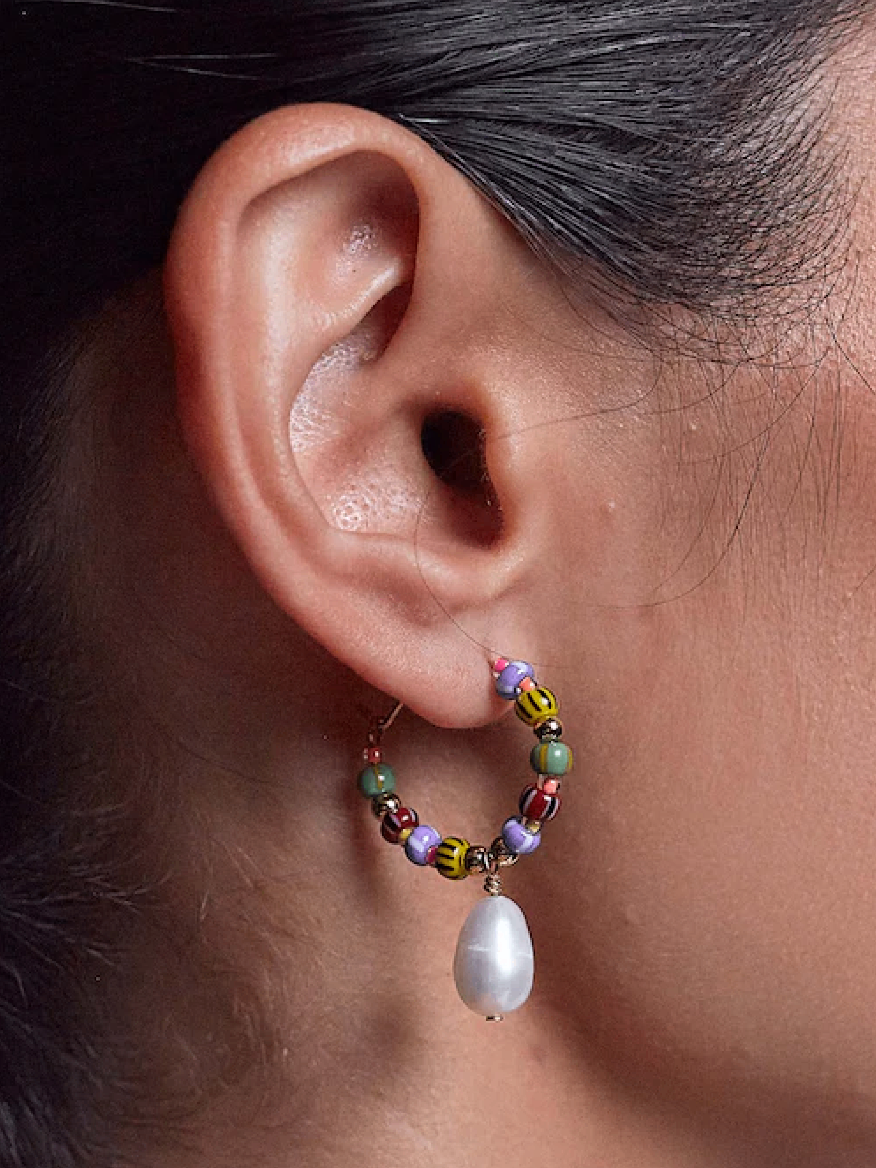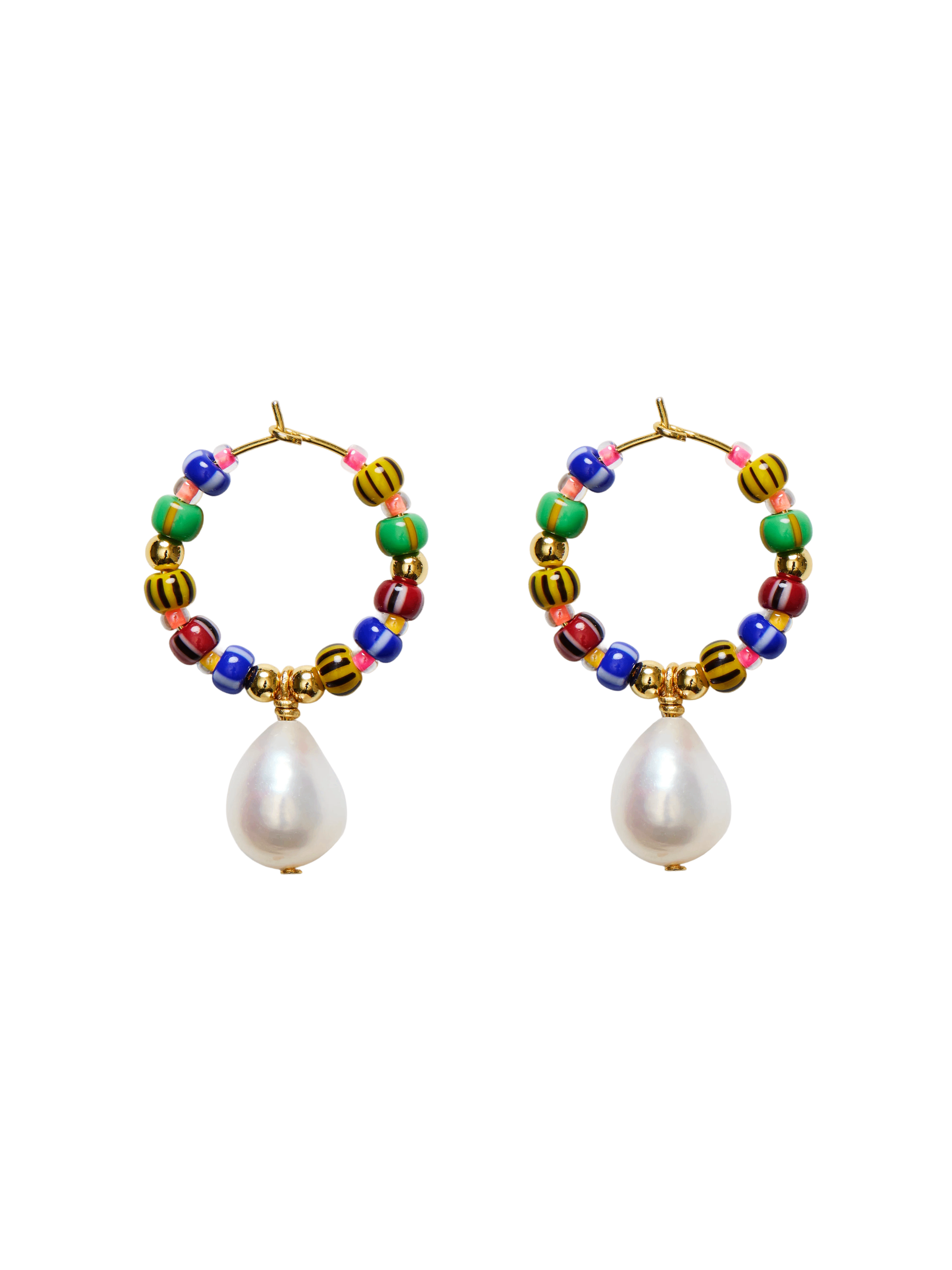 Color explosion meets pearl magic! Die Magic Moments Creolen von Anni Lu vereinen bunte Glasperlen mit einer auffälligen Süßwasserperle. Die 18kt Vergoldung rundet das Design mit einem funkelnden Touch ab – verspielt, lebendig und absolut einzigartig.