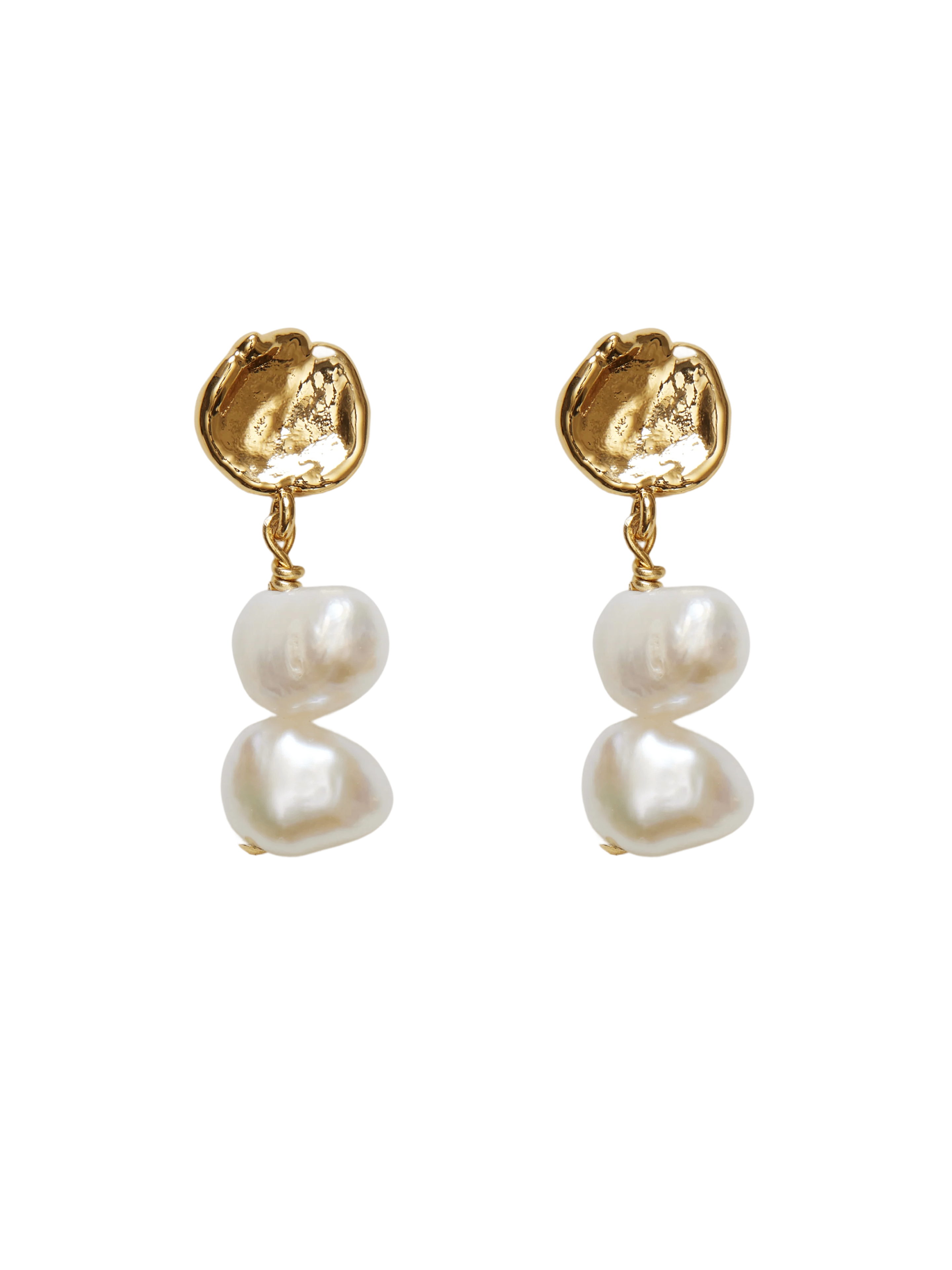 Pearls with a twist! Die Pearly Drop Ohrhänger bringen mit ihren unregelmäßig geformten Süßwasserperlen einen modernen, verspielten Look ans Ohr. 18kt vergoldete Stecker setzen den edlen Rahmen und machen das Design gleichzeitig cool & classy. Ein Lieblingsstück für alle, die Perlen neu interpretieren und ihren Look mit Fun & Eleganz aufwerten wollen.