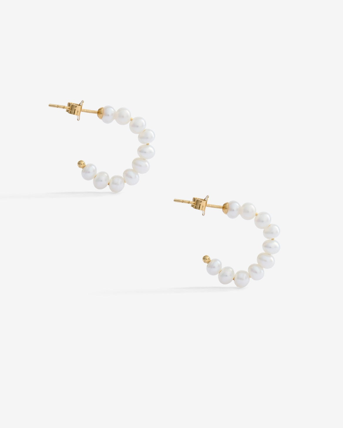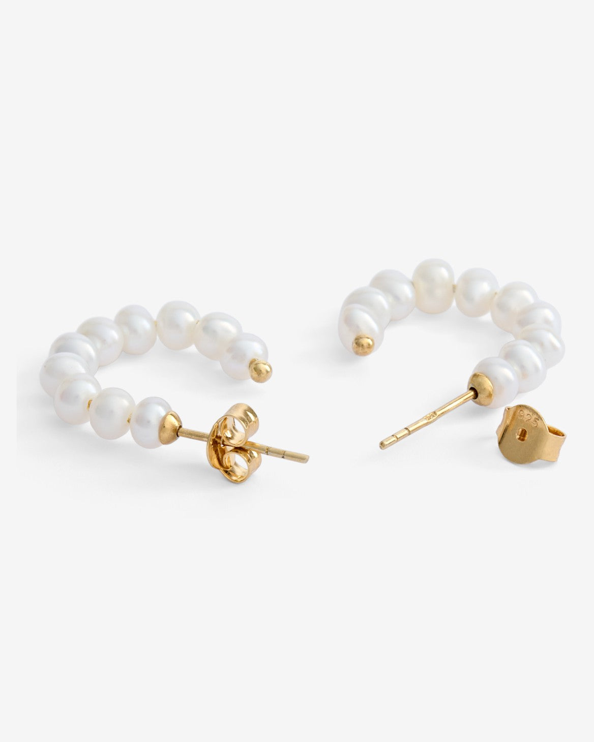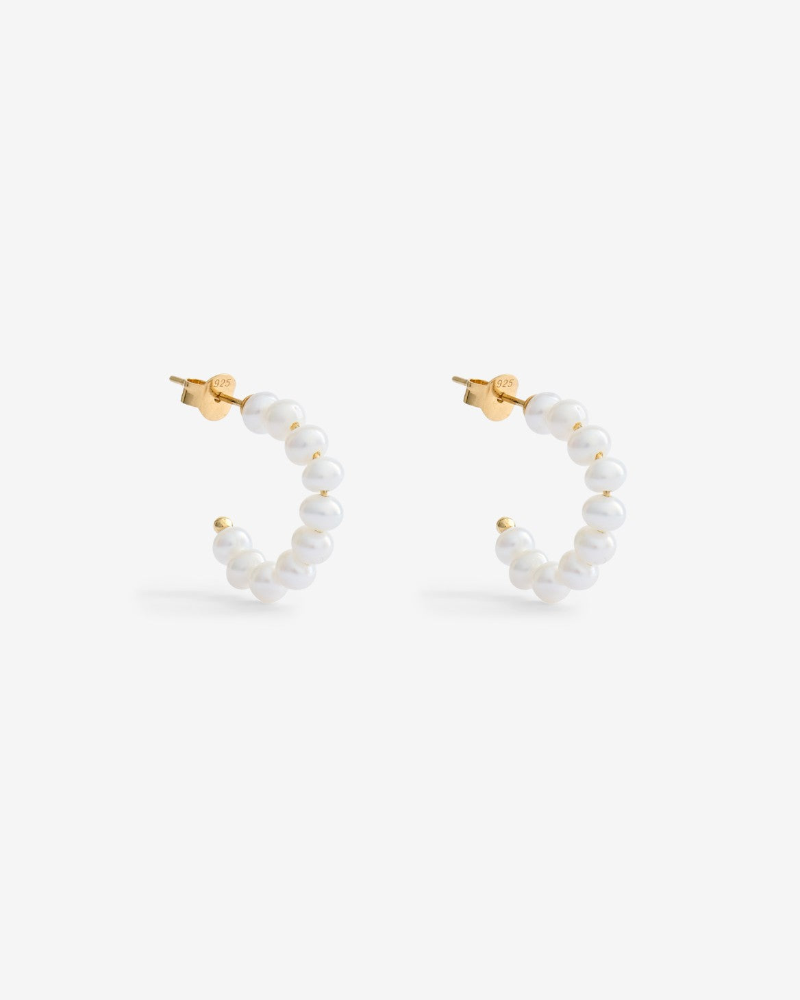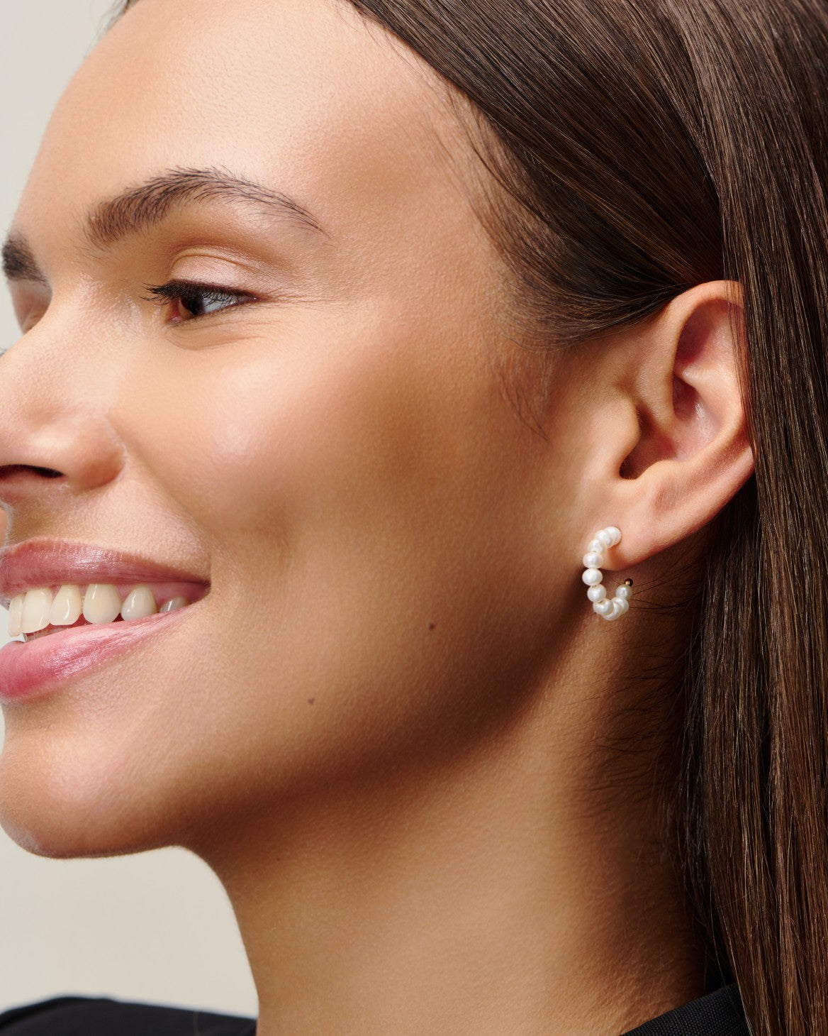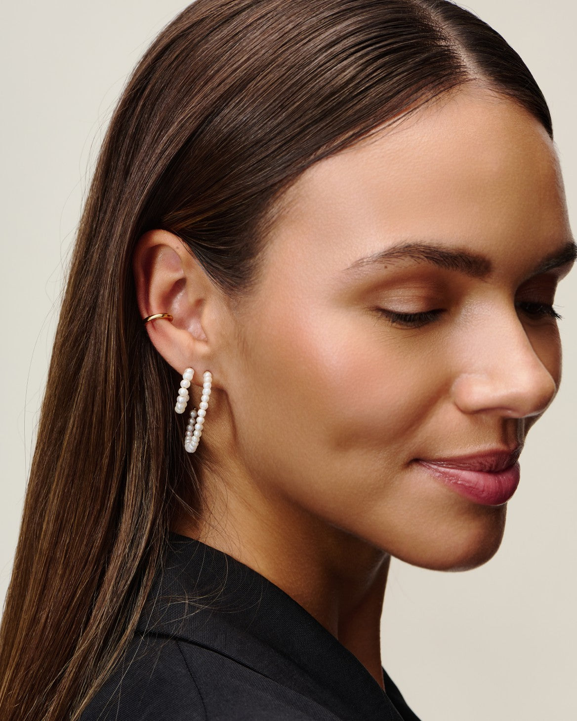 Zeig Dich mit diesen Perlen Creolen von Deiner eleganten Seite! Sie sind mit ihrem anmutigen Design ein Symbol für zeitlosen Glamour und dabei dennoch ganz minimalistisch gehalten. So überzeugen sie mit ihrem Flair und versprechen ein glänzendes wie auch legeres Finish für Deine liebsten Outfits.