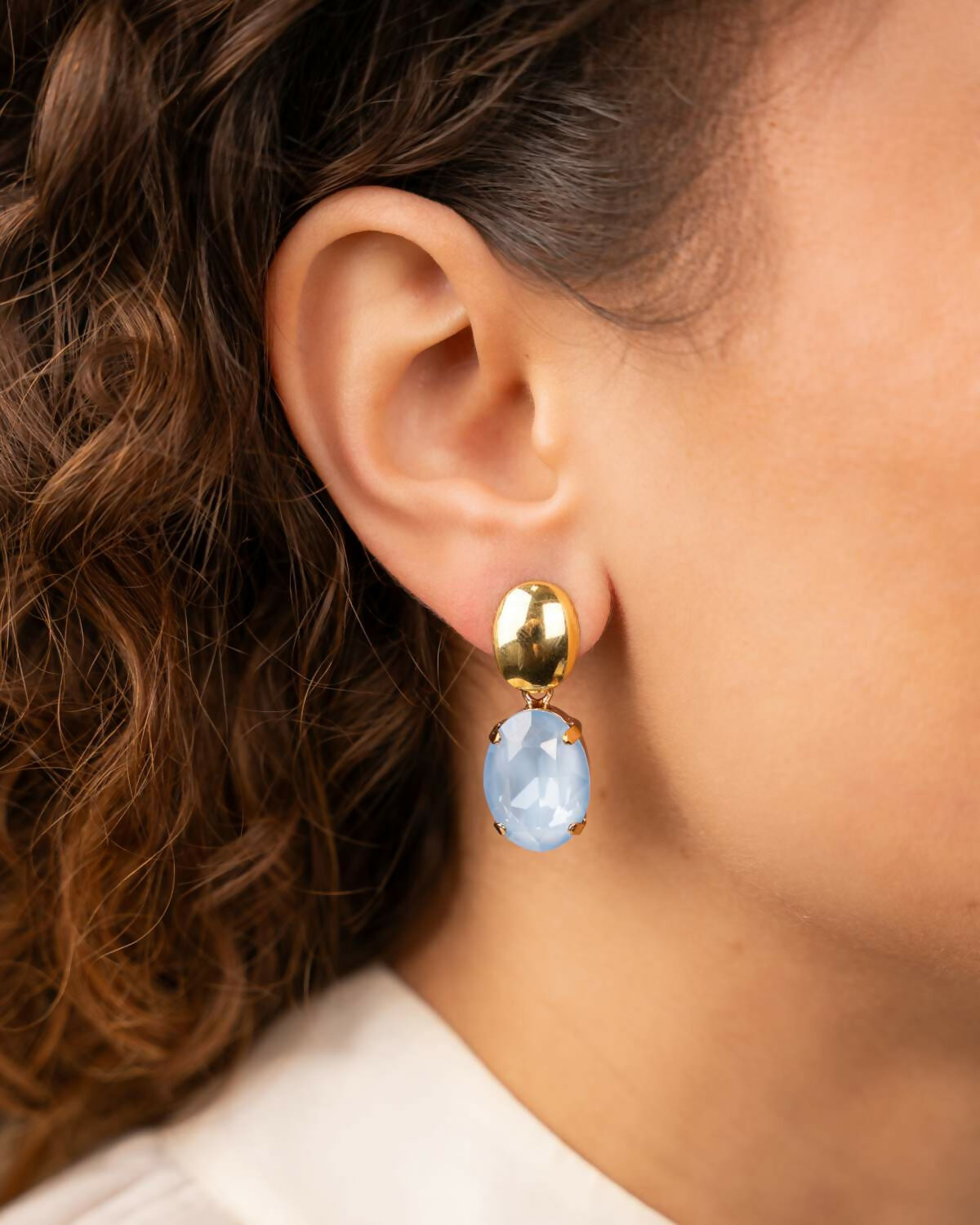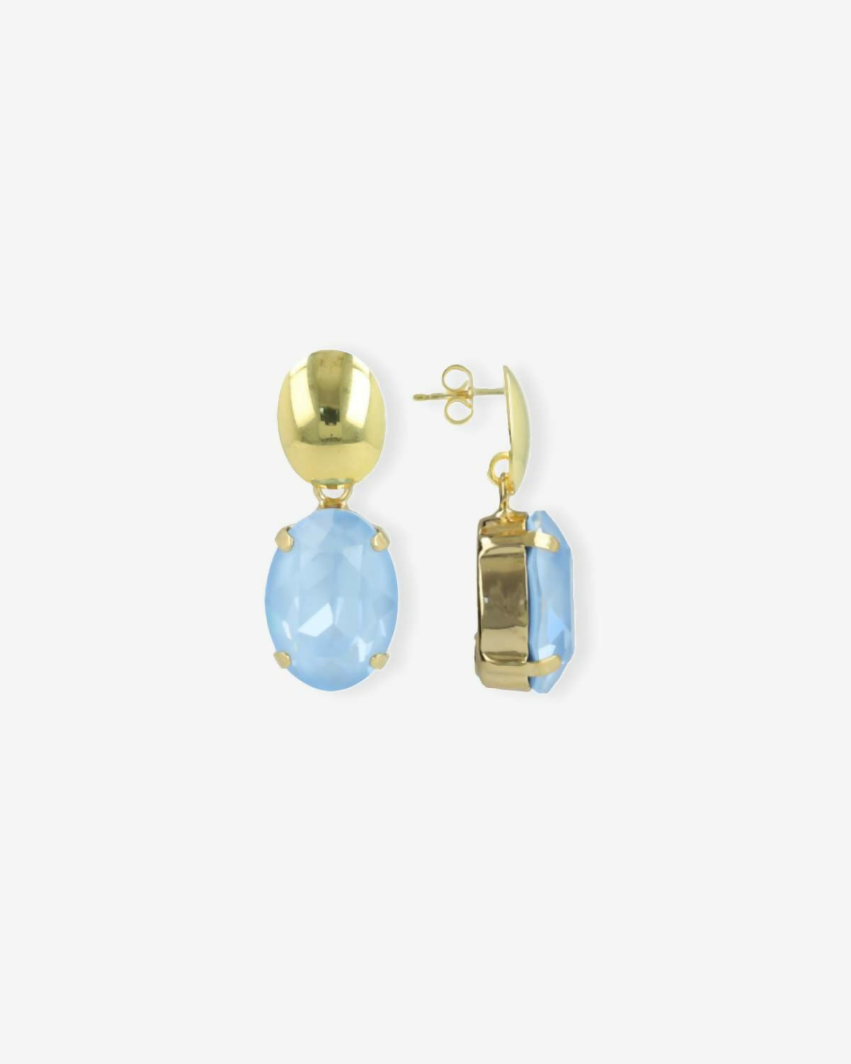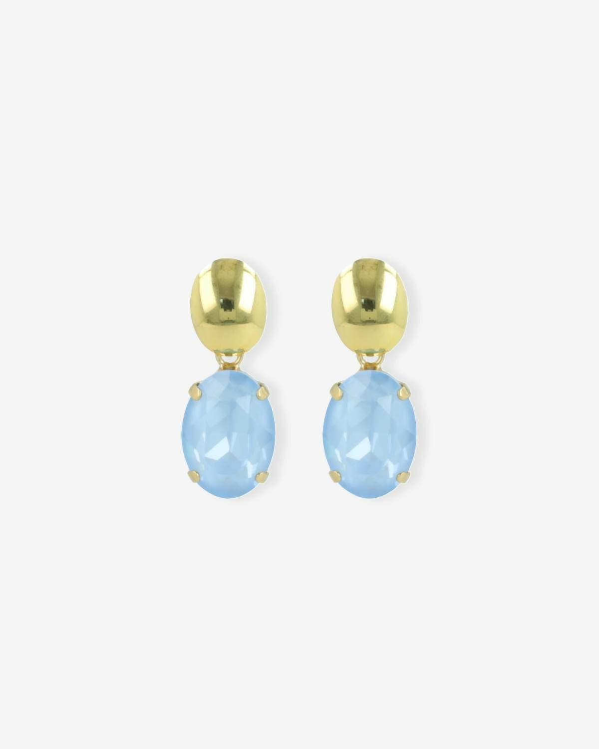 Strass Oval Pendant M Sky Blue - Ohrhänger - Vergoldet