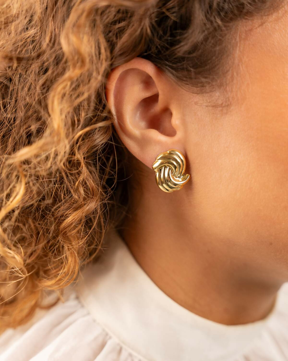 Hollowed Double Wave Earring - Ohrhänger - 18kt vergoldet