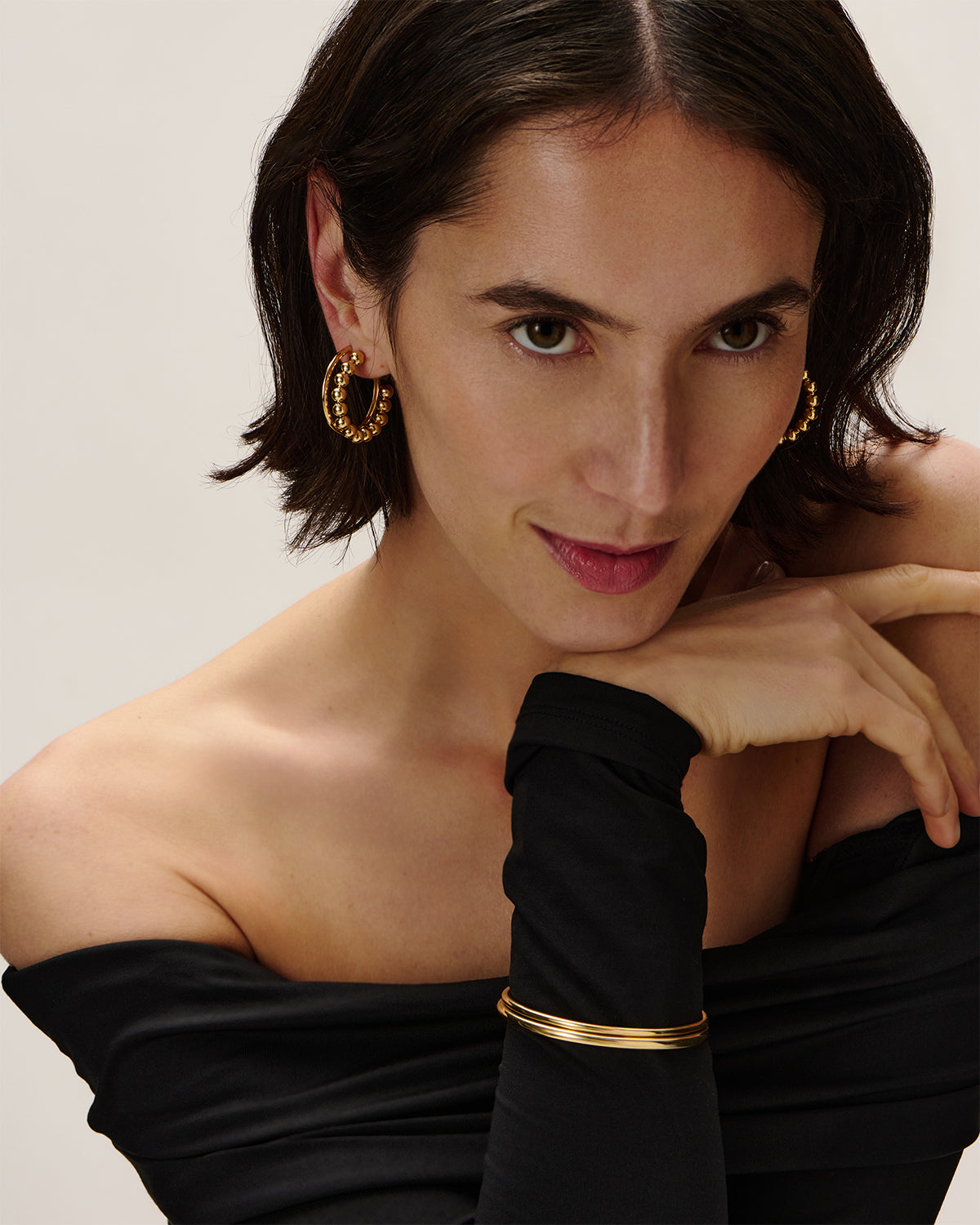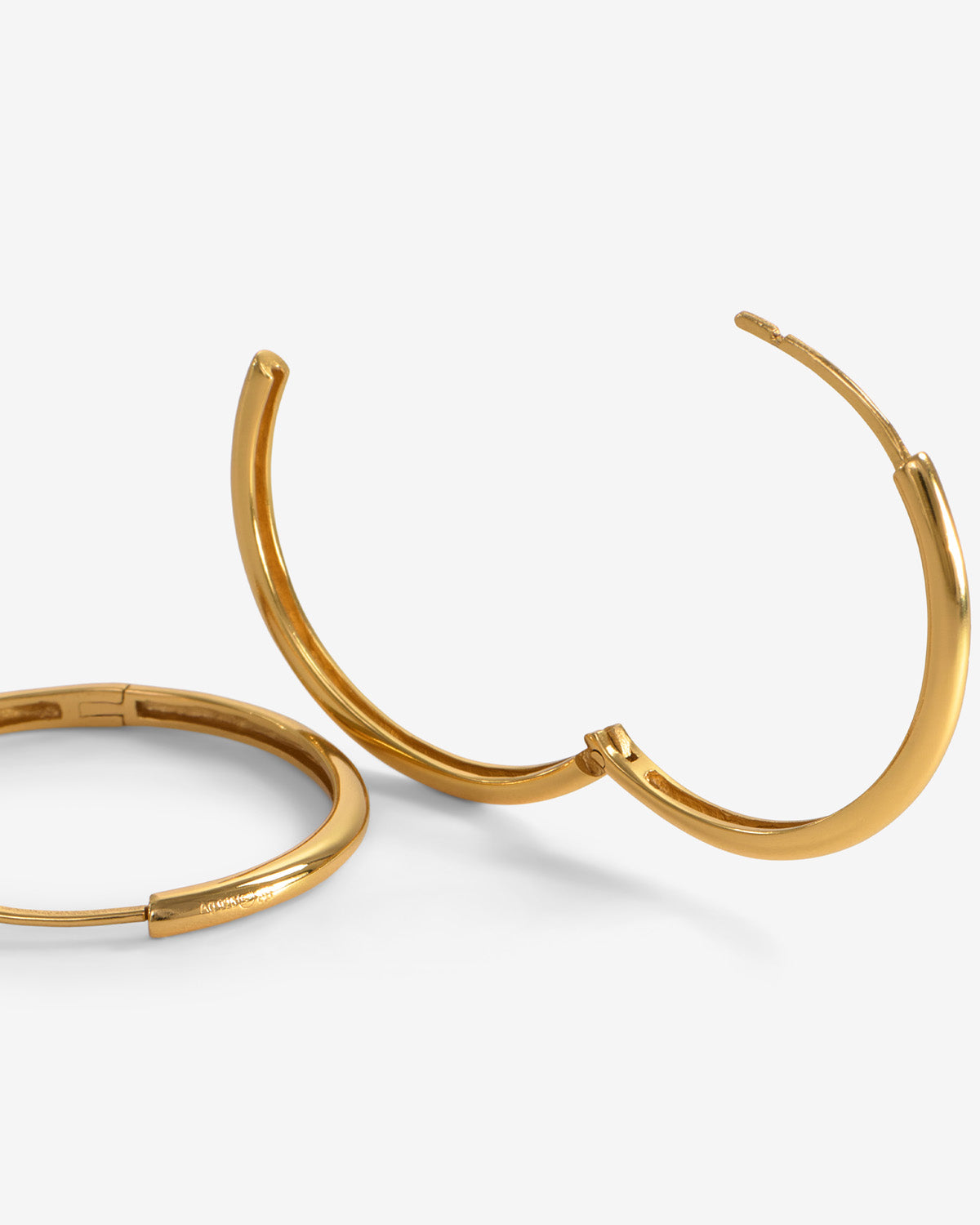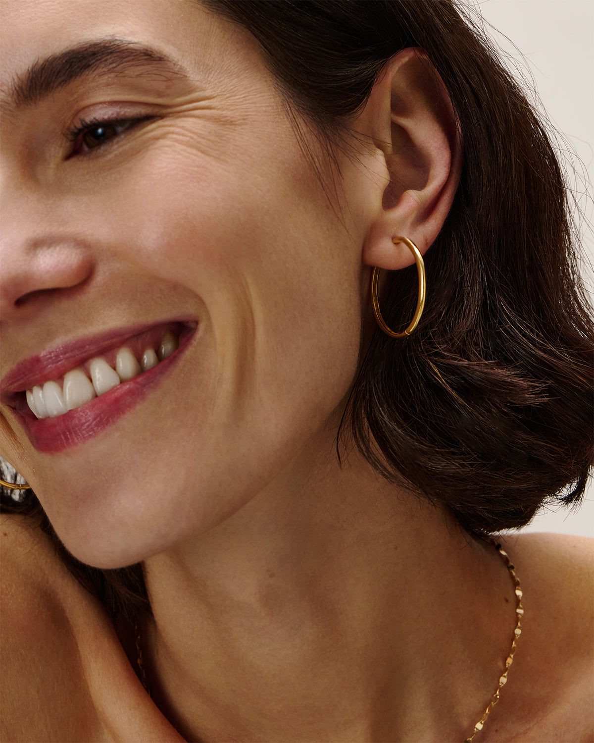 Die Lillian Biggie Creolen von Pompidou sind die idealen Accessoires für eine coole Ear Party. Gefertigt aus 18kt vergoldetem, recyceltem Sterlingsilber überzeugen die XL Creolen durch ihre hohe Qualität. Sie liegen voll im Trend und sind absolut alltagstauglich sowie vielseitig kombinierbar.
