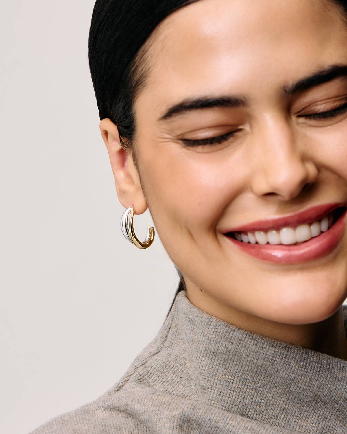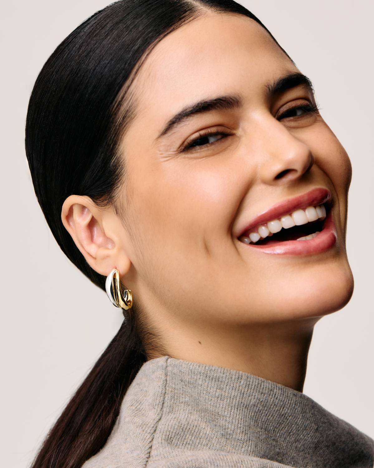 Chubby, shiny, unapologetically cool: Die Chubby Duo Two Tone Hoops von Pompidou bringen doppelten Glow an dein Ohr. Die voluminösen Creolen kombinieren 18kt Vergoldung und Silber-Finish im angesagten Two-Tone-Look – modern, edgy und super vielseitig. Ein Statement für jeden Tag, das deinem Style sofort ein Upgrade verpasst.