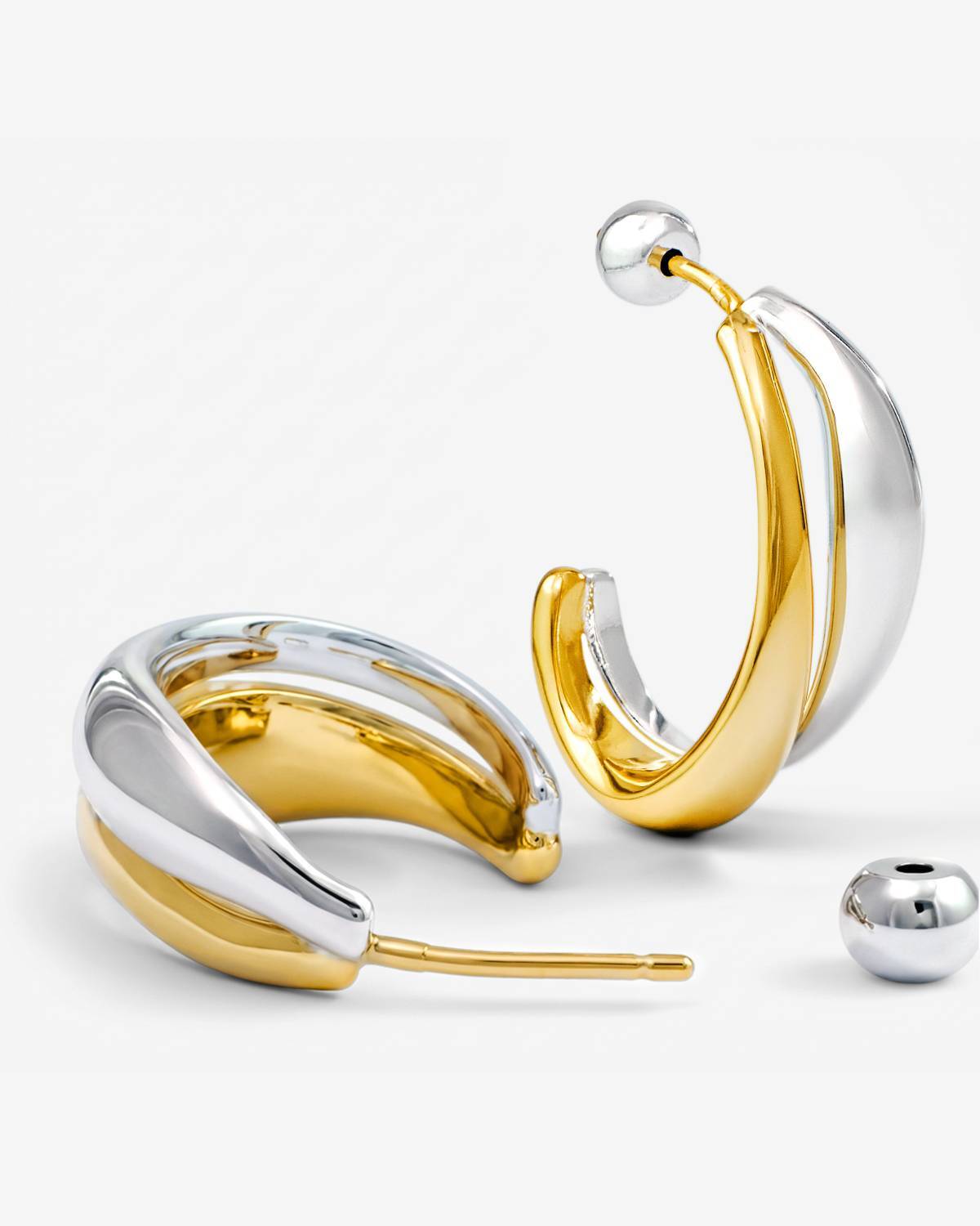 Chubby Duo Two Tone Hoops - Creolen - 18kt vergoldet und versilbert
