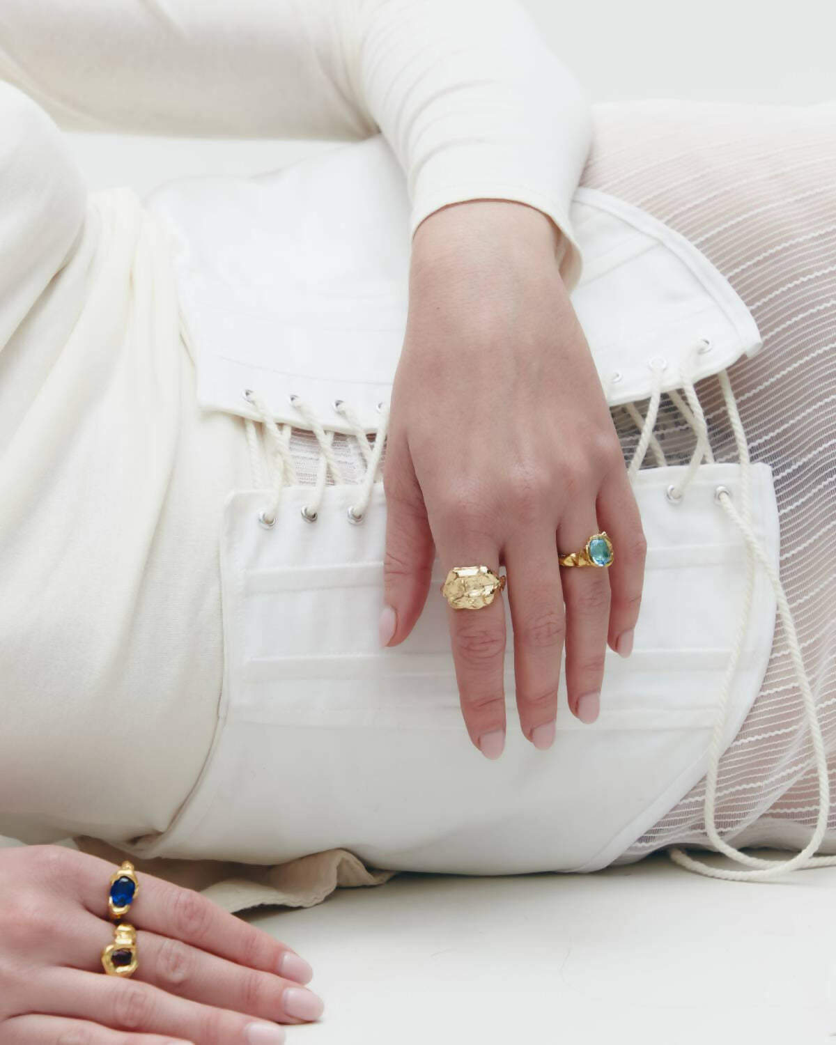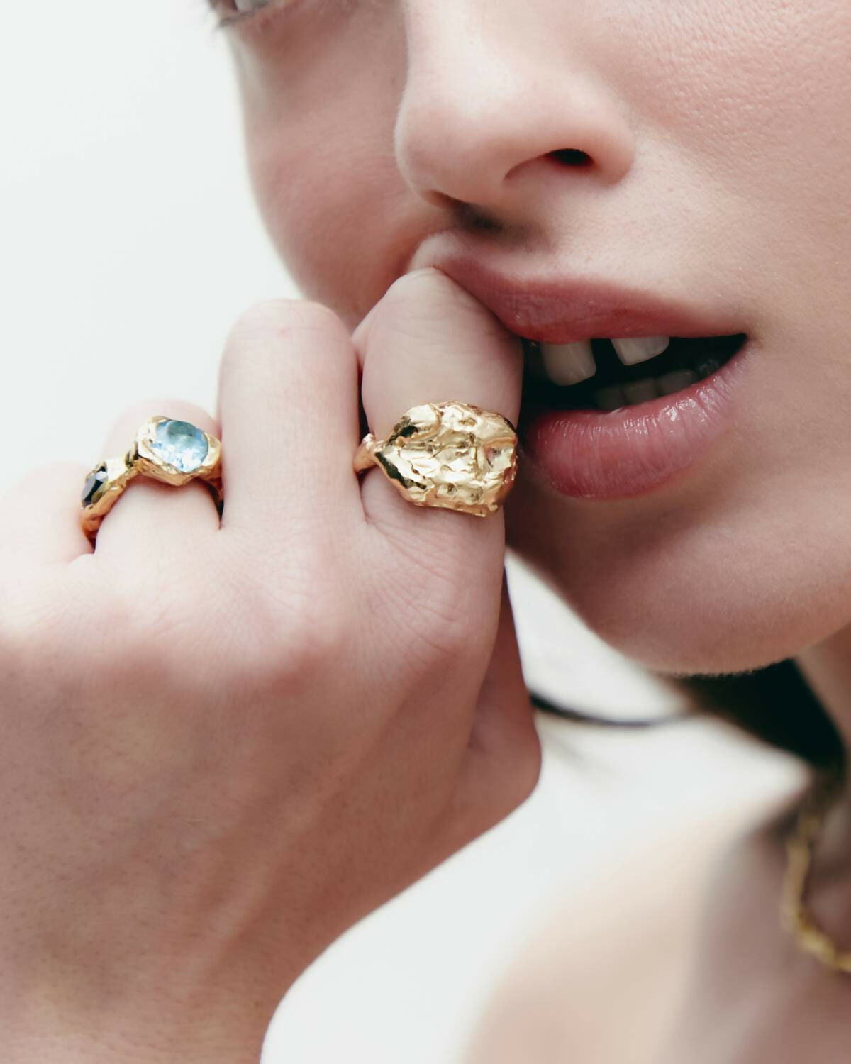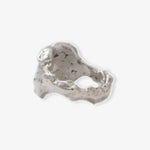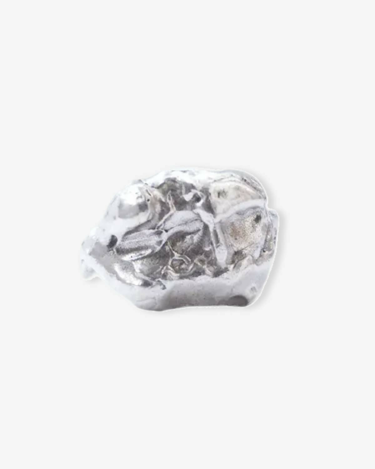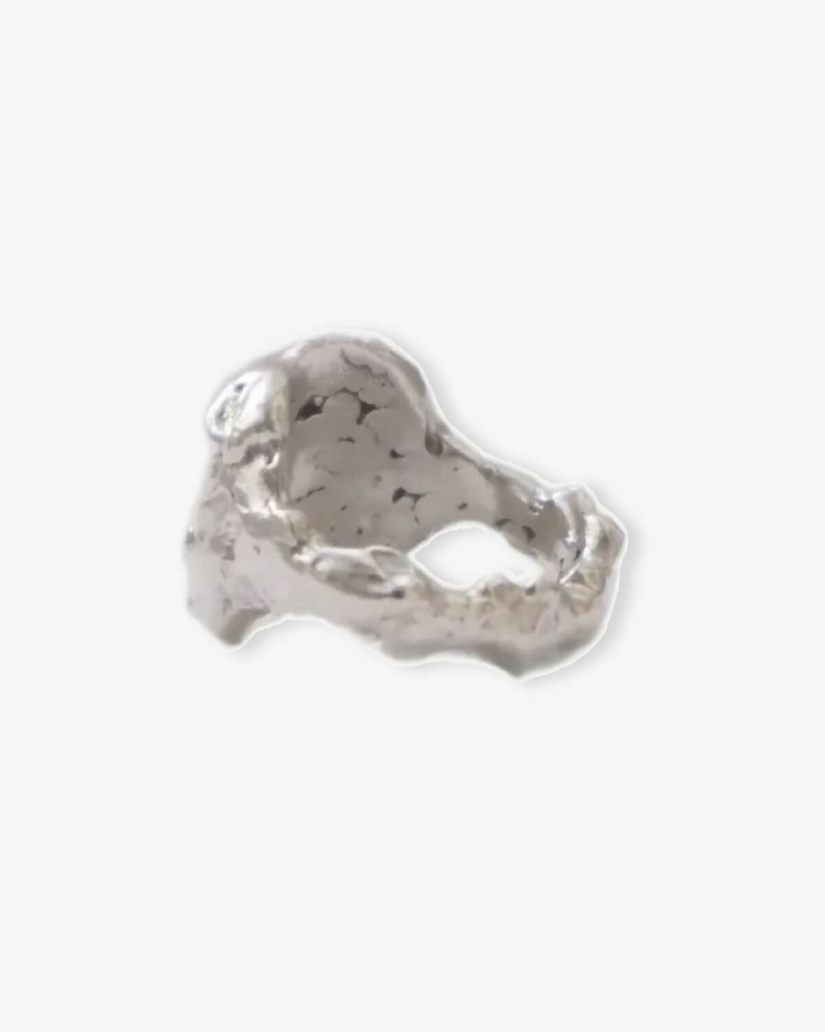Signet ring made of 925 recycled silver, with an irregular surface and organic texture. A reinterpretation of the traditional signet ring. Handmade in Barcelona, following the legacy of traditional jewelry, reinterpreted from a contemporary perspective. Each piece is handmade, which may result in small variations or natural imperfections that are part of its artisanal character.