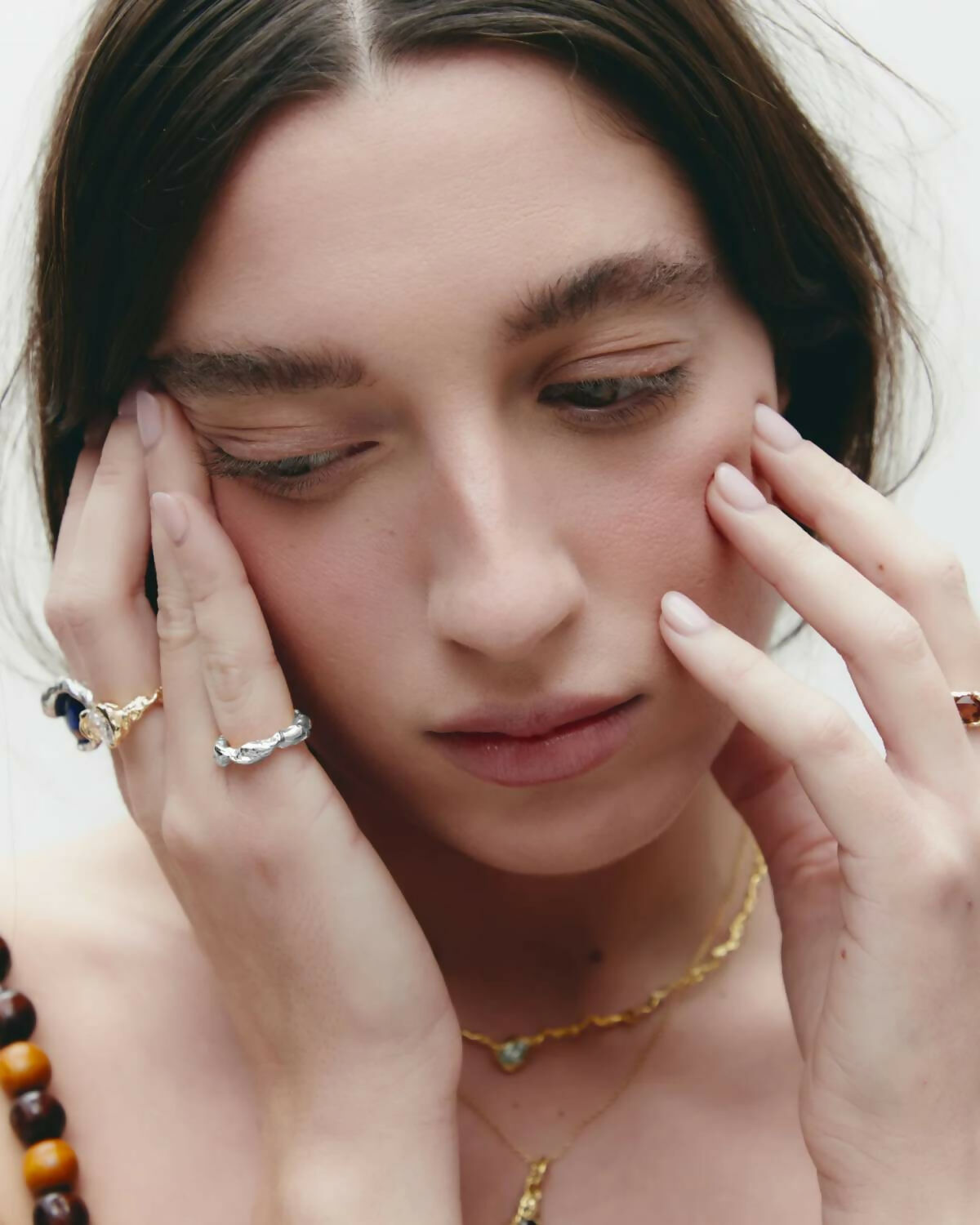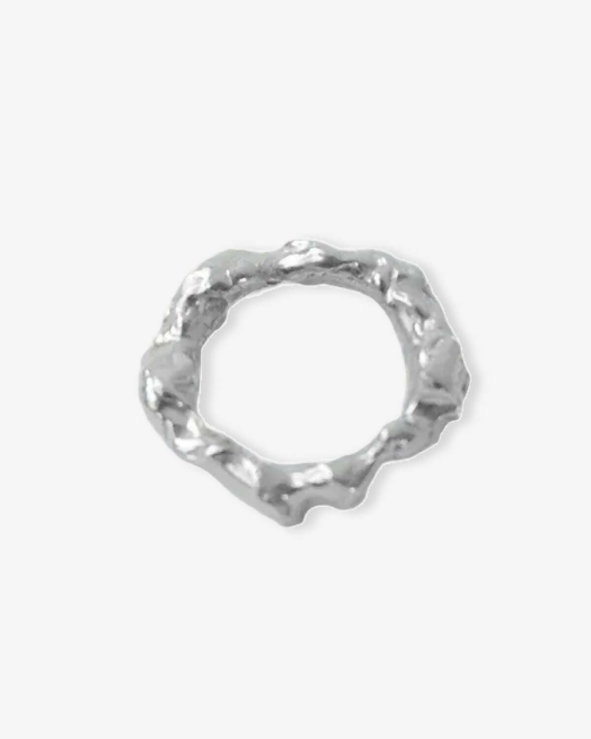 Ring made of 925 recycled silver with an organic surface and irregular relief. Its form is composed of small elevations that flow along the piece, evoking the hand-shaped gesture that gives it life. Handmade in Barcelona, following the legacy of traditional jewelry, reinterpreted from a contemporary perspective. Each piece is handmade, which may result in small variations or natural imperfections that are part of its artisanal character.
