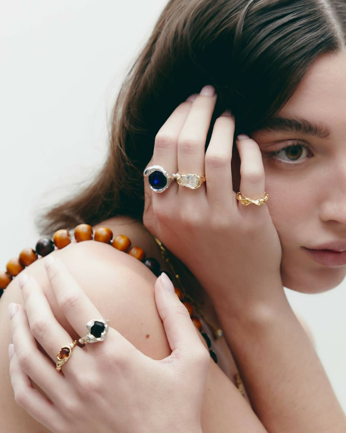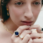 Ring made of 925 recycled sterling silver, designed around the concept of tension and balance. A stone is integrated into the structure, creating a contrast between strength and fluidity. Its sculptural form highlights the relationship between volume and movement. Handmade in Barcelona following traditional jewelry techniques reinterpreted from a contemporary perspective. Each piece is handmade and may present slight variations.