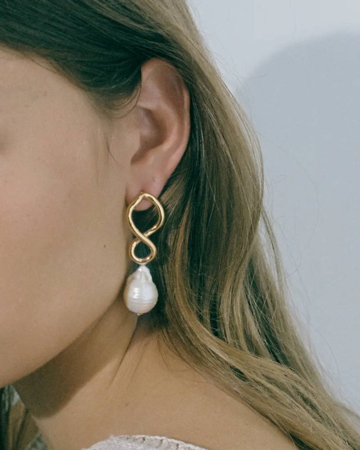 Ein Ohrschmuck, der Geschichten erzählt: Die Corsica Earrings kombinieren fließende Goldschleifen mit funkelnden Tropfen in zartem Champagner. Dank 22kt Vergoldung strahlen sie luxuriös, aber nie überladen. Perfekt für alle, die verspielte Eleganz lieben.