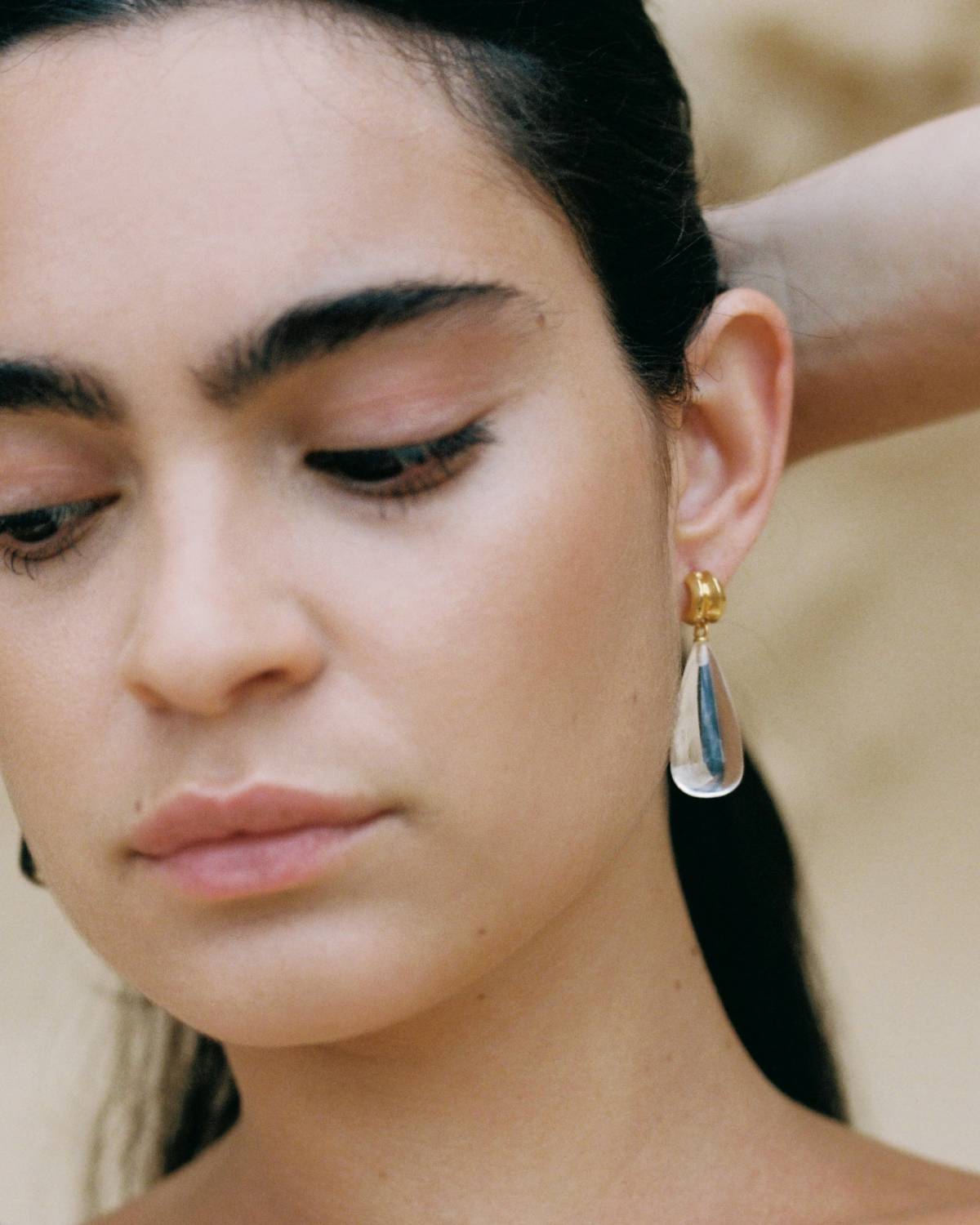 Ein Hauch von Liquid Luxury – die Lucille Earrings Clear verzaubern mit klaren Tropfen, die wie kleine Glaskunstwerke wirken. Eingefasst in 22kt vergoldete Creolen strahlen sie modern und elegant zugleich. Perfekt, um jedem Look einen coolen, zugleich glamourösen Twist zu verleihen.