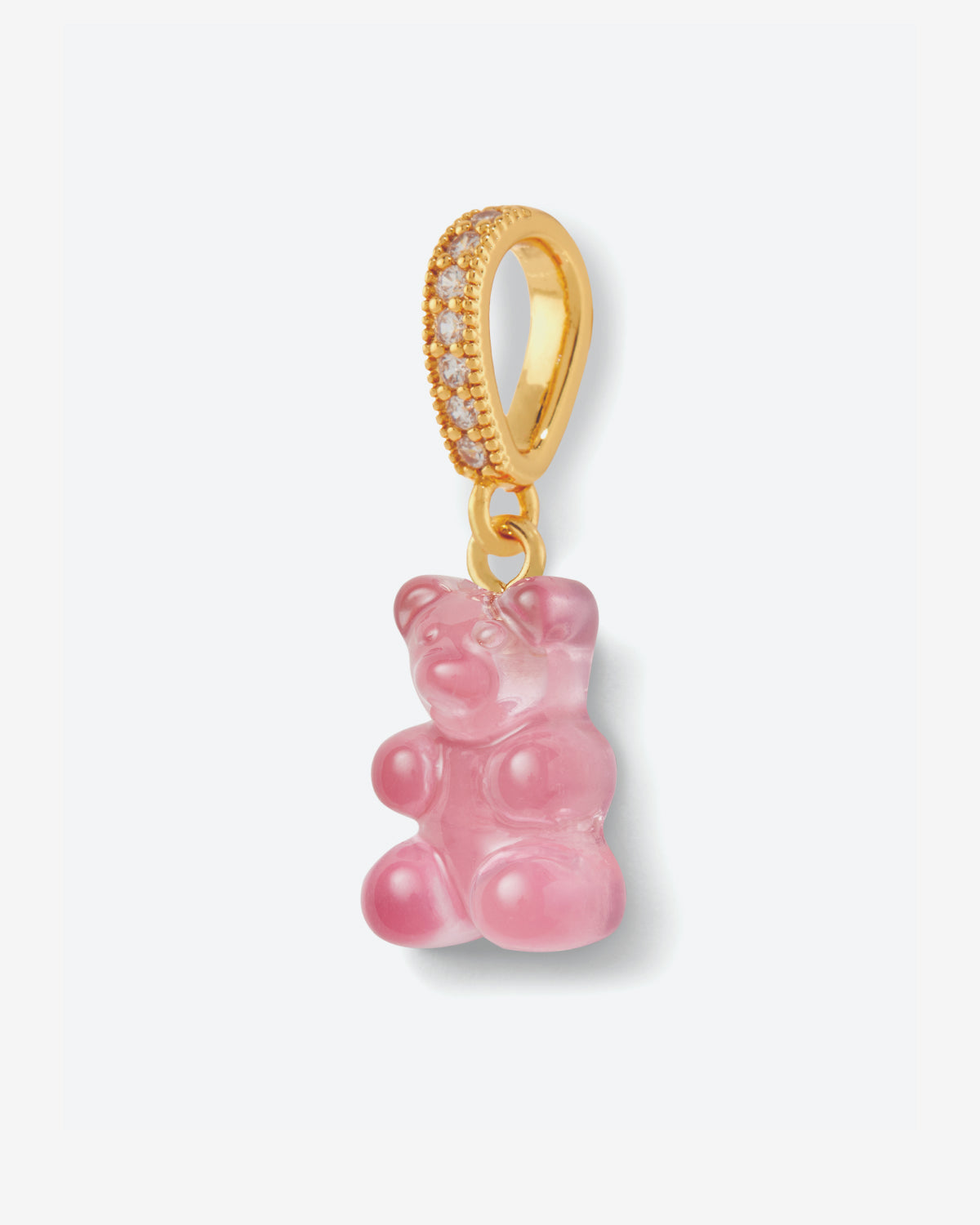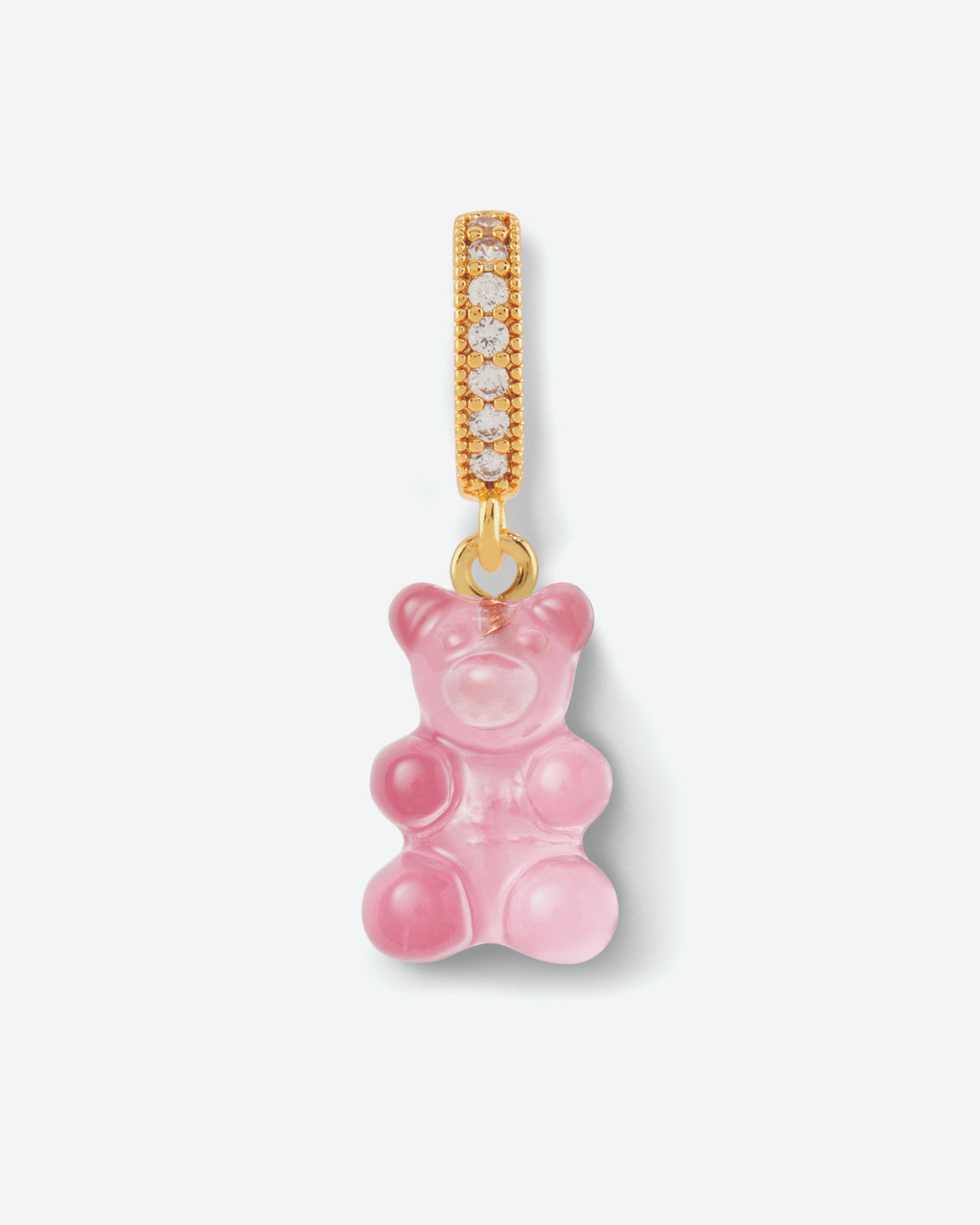 Dieser süße Kettenanhänger von Crystal Haze besticht durch das nostalgische Design eines Gummibärchens. Vielseitig kombinierbar, vervollständigt er jedes Outfit. Ob an Halsketten, Armbändern oder Fußkettchen getragen – die funkelnden Zirkoniasteine, das 18kt vergoldete Messing und das hochwertige Acetat machen ihn zu einem echten Hingucker.