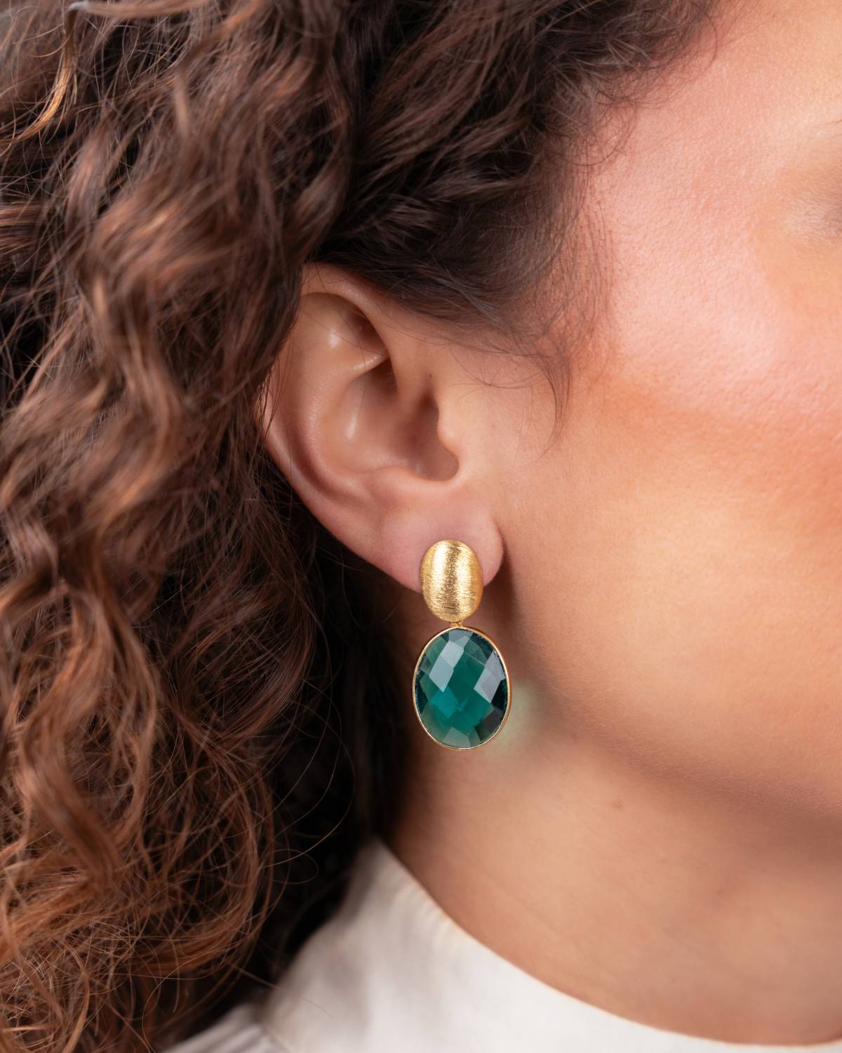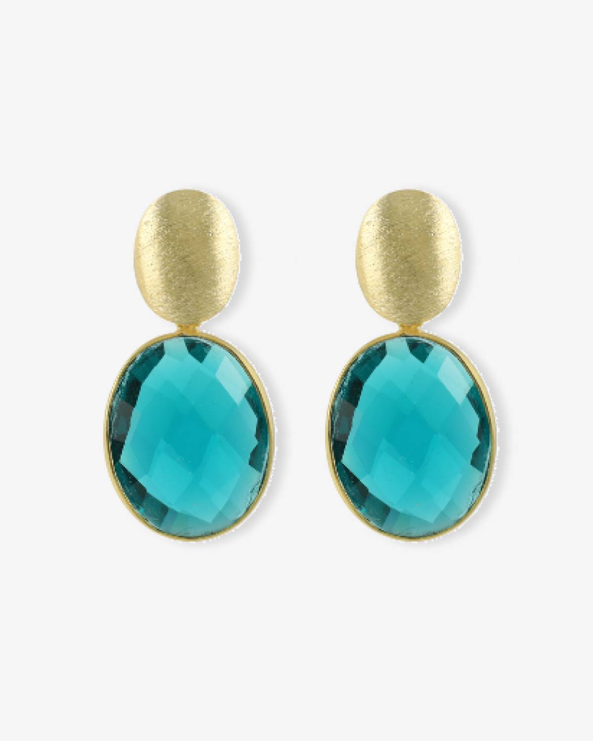 Giorgia Framed Oval S Teal Blue - Ohrhänger - 18kt vergoldet