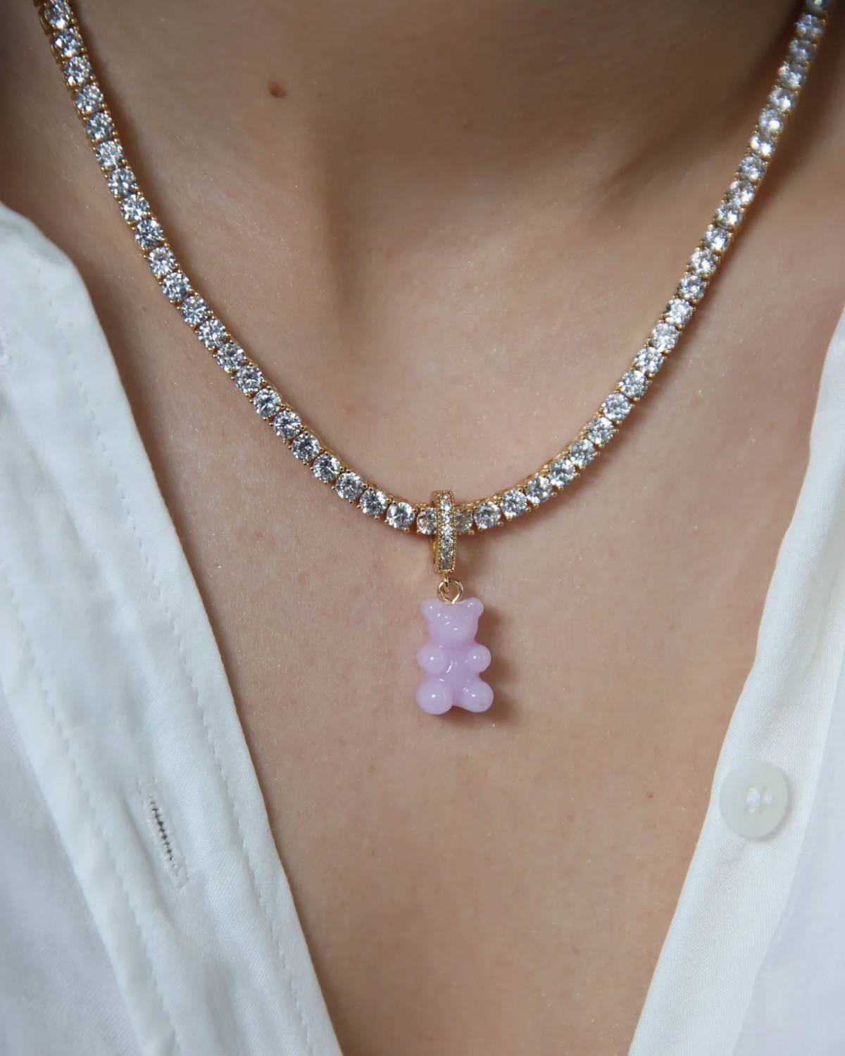 Dieser süße Kettenanhänger von Crystal Haze besticht durch das nostalgische Design eines Gummibärchens. Vielseitig kombinierbar, vervollständigt er jedes Outfit. Ob an Halsketten, Armbändern oder Fußkettchen getragen – die funkelnden Zirkoniasteine, das 925er versilberte Messing und das hochwertige Acetat machen ihn zu einem echten Hingucker.