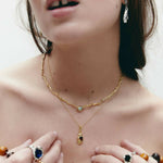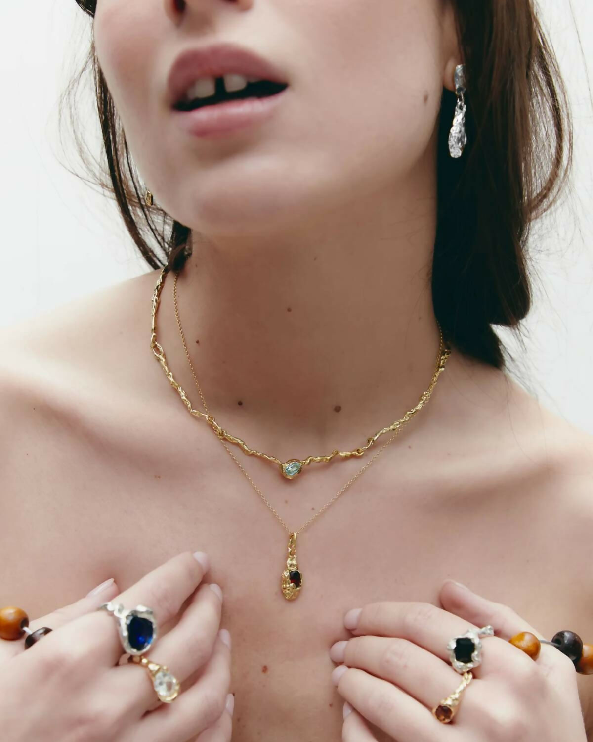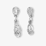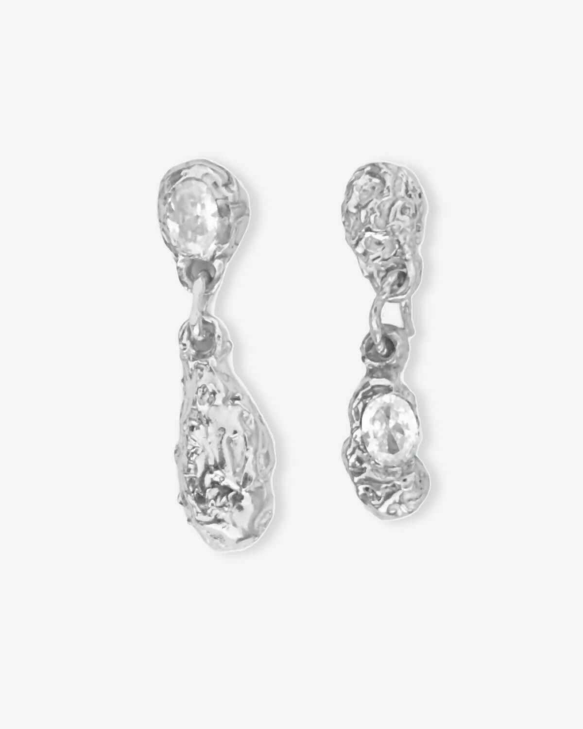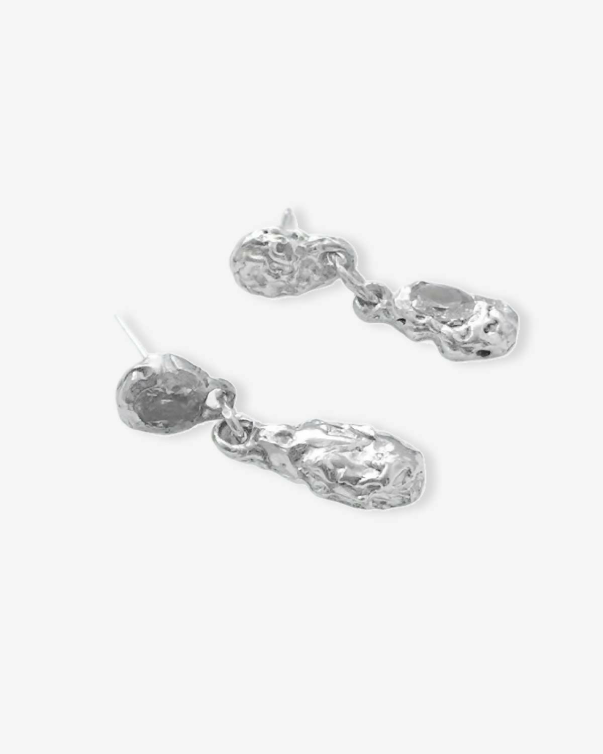 Earrings made of 925 recycled silver, composed of two connected bodies: the upper part holds a stone, while the lower irregular silver form falls with organic movement. Their design allows them to be worn individually or combined with other pieces in the collection, creating asymmetrical compositions. Handmade in Barcelona, following the legacy of traditional jewelry, reinterpreted from a contemporary perspective. Each piece is handmade, which may result in small variations or natural imperfections that are part of its artisanal character.