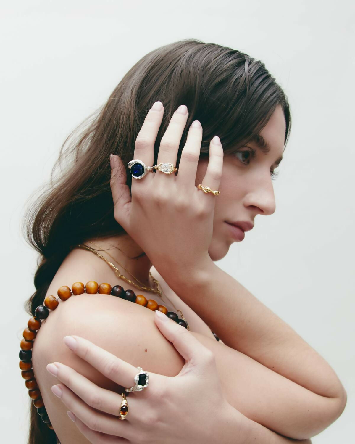 Ring made of 925 recycled sterling silver plated in 18k gold, designed around the concept of tension and balance. A stone is integrated into the structure, creating a contrast between strength and fluidity. Its sculptural form highlights the relationship between volume and movement. Handmade in Barcelona following traditional jewelry techniques reinterpreted from a contemporary perspective. Each piece is handmade and may present slight variations.