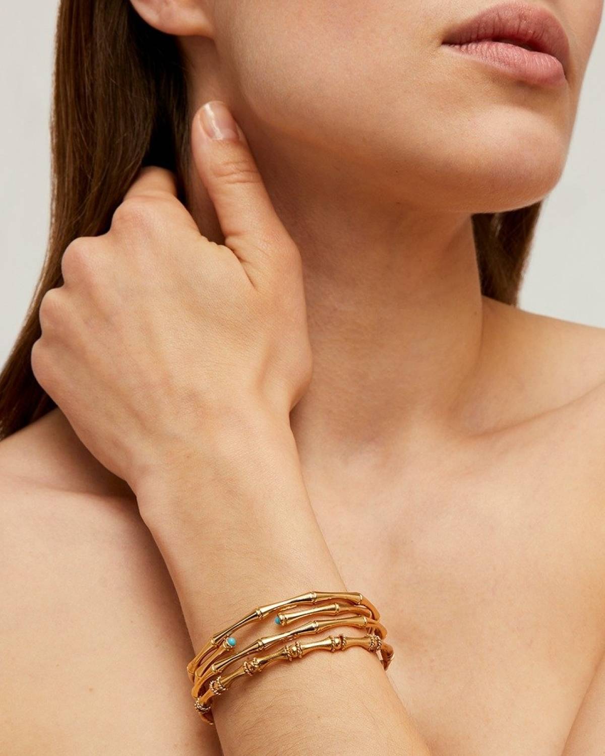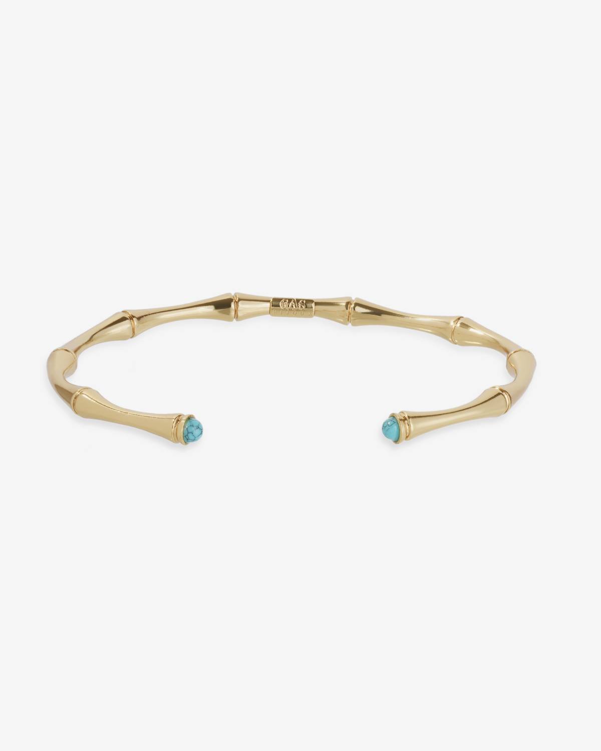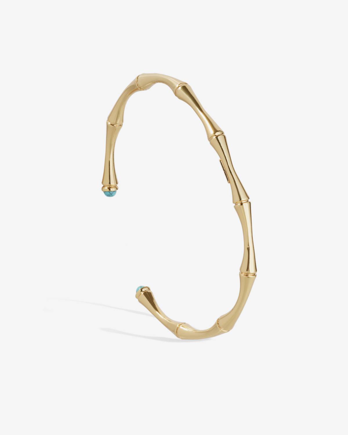 The Bambou Cabochons mini bracelet combines a soft bamboo shape with a delicate shine. The 24ct gold plating brings warmth to the design, while turquoise cabochons at the ends provide fresh accents. Elegant, light and perfect for sunny days - a golden highlight on its own or in a stack.