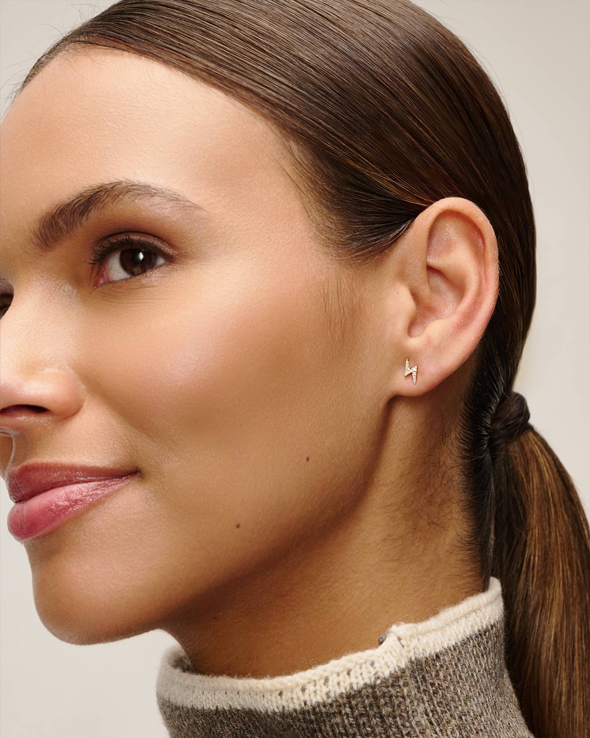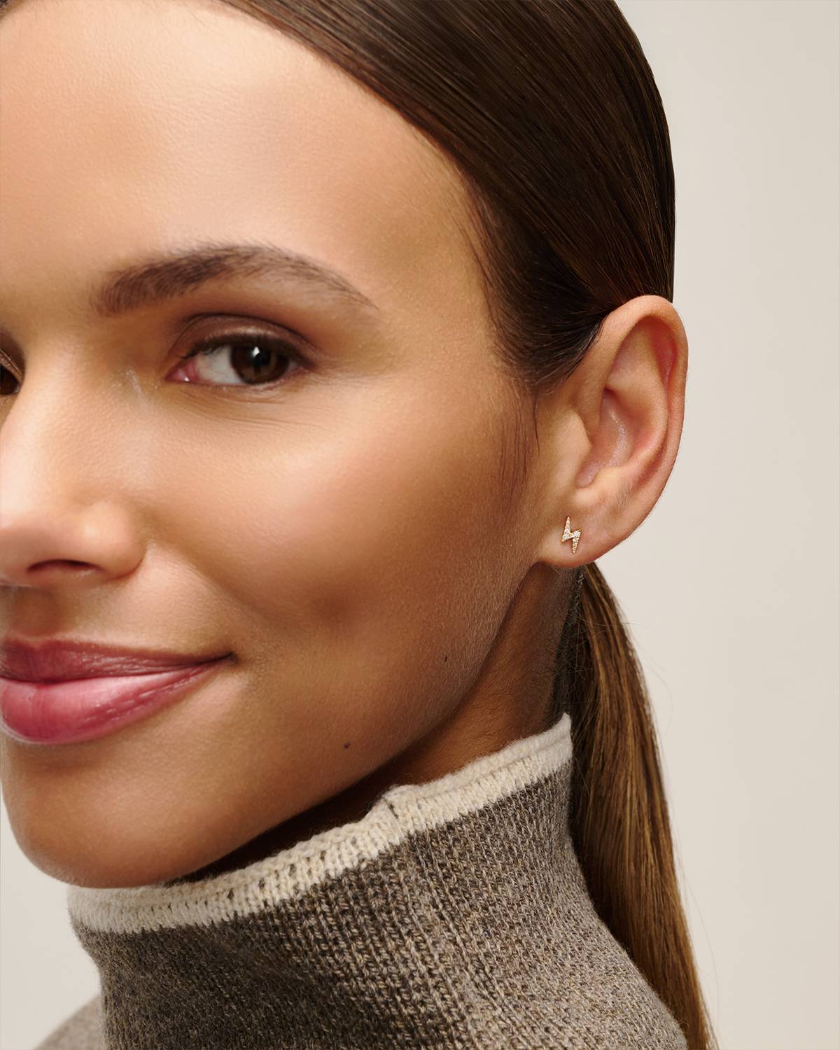 A spark of pure energy! The Lightning Bolt stud shines in 14ct real gold plating, accented with dazzling diamond stones. Its sharp, modern silhouette catches the light with every move – elegant, edgy, and with a touch of rock’n’roll. A power piece bursting with glam energy.