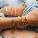 Die Goldfäden verflechten sich zu einem einzigartigen, feinen und eleganten Design. Dieses schmale Armband wird in Atelier Paulin's Atelier von Hand geformt und gedreht.