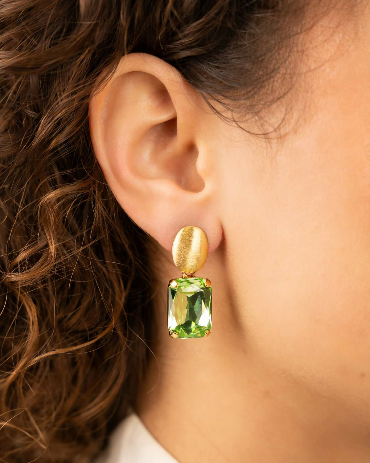 Verleihe deinem Look einen Hauch von zeitloser Eleganz mit den 'Light Peridot Element Rectangle Earrings' von LOTT. gioielli. Mit ihrer rechteckigen Form und den funkelnden Strass-Elementen in einem hellen Peridot-Farbton versprühen diese wunderschönen Ohrringe einen raffinierten Charme. Ihre schimmernden Details fangen das Licht auf eine subtile und elegante Weise ein und verleihen jedem Outfit einen Hauch von Glamour. Durch ihr mittleres Gewicht sind diese Ohrringe angenehm zu tragen und eignen sich daher perfekt für den Alltag oder besondere Anlässe. Egal, ob Du sie zu einem schicken Abendessen oder zu einem Ausgehabend tragen, sie werden garantiert die Aufmerksamkeit auf sich ziehen und deinen Stil auf ein neues Niveau heben. Kombiniere sie mit anderen Stücken aus unserer Kollektion für einen koordinierten und luxuriösen Look. Verleihe deiner Schmuckkollektion einen Hauch von Exklusivität mit den 'Light Peridot Element Rectangle Earrings' von LOTT. gioielli. Ihr raffiniertes Design und die funkelnden Details machen sie zu einem unverzichtbaren Accessoire für jede moderne Frau. You deserve a LOTT.
