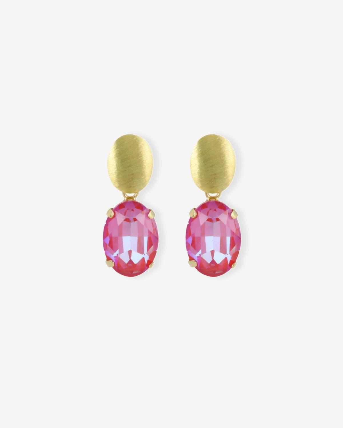 Strass Oval Pendant M Fuchsia - Ohrhänger - Vergoldet