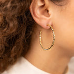 Classic hoops with intricate details belong in every jewelry collection. The New L earrings are exactly that. Made of gold-plated sterling silver, these hoops feature a fine texture that draws attention. Easy to integrate into a wide variety of looks!