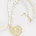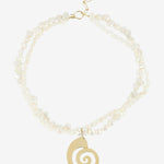 Passendes Collier für jeden Tag mit Süßwasserperlen und einer vergoldeten Muschel. Die Muschel zieht die Aufmerksamkeit auf sich und bringt einen Hauch von Sommer in jeden Look.