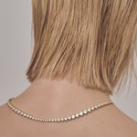 A tennis necklace where the stones vary in size and catches the light, illuminating your neckline, crafted in 925 sterling silver.